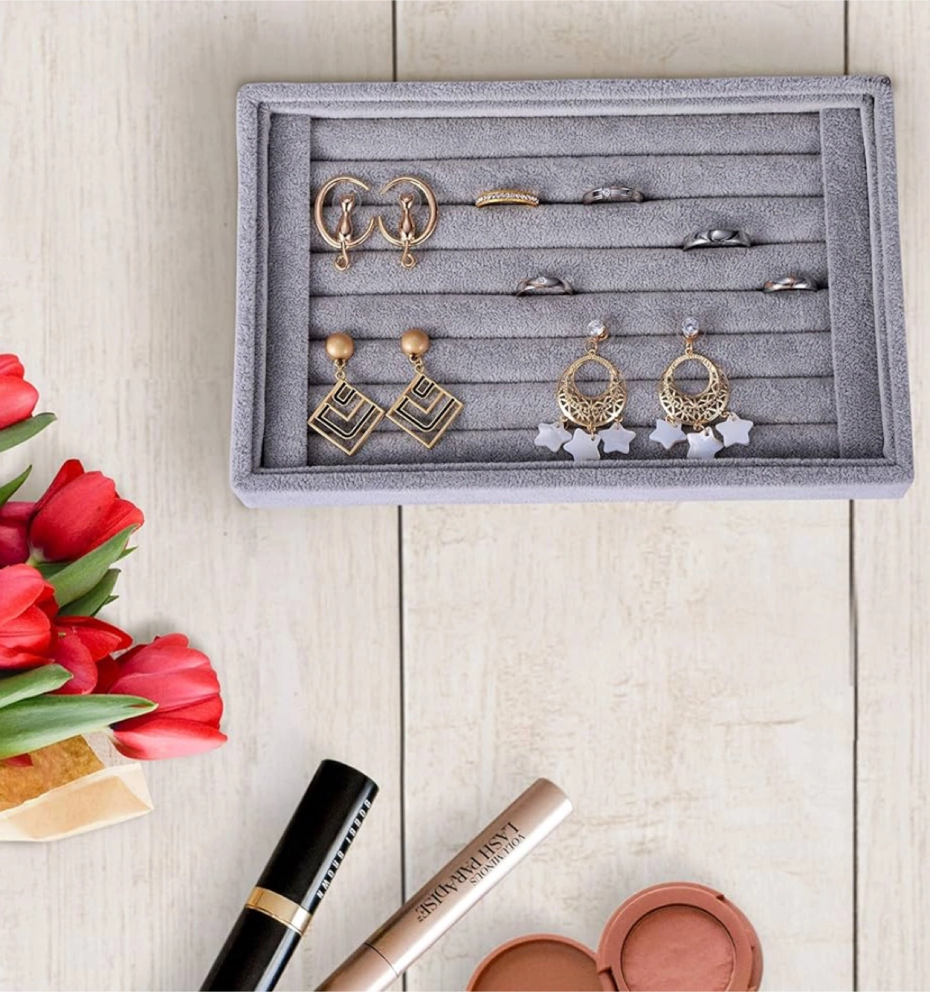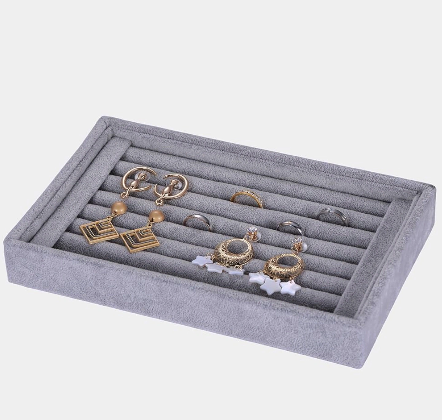 Grey Velvet Jewelry Organizer Tray