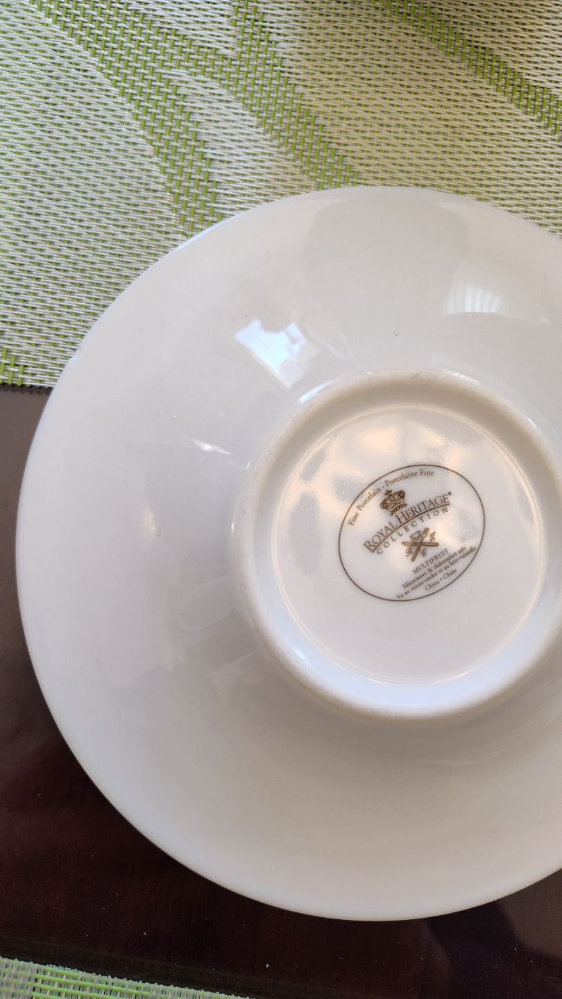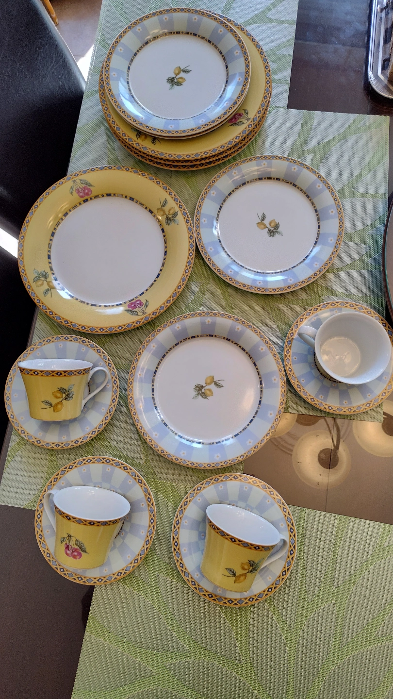 Beautiful Royal Heritage fine china. Lemons and floral design. Includes dinner plates, salad plates, teacups and saucers. Total 16 lovely pieces.