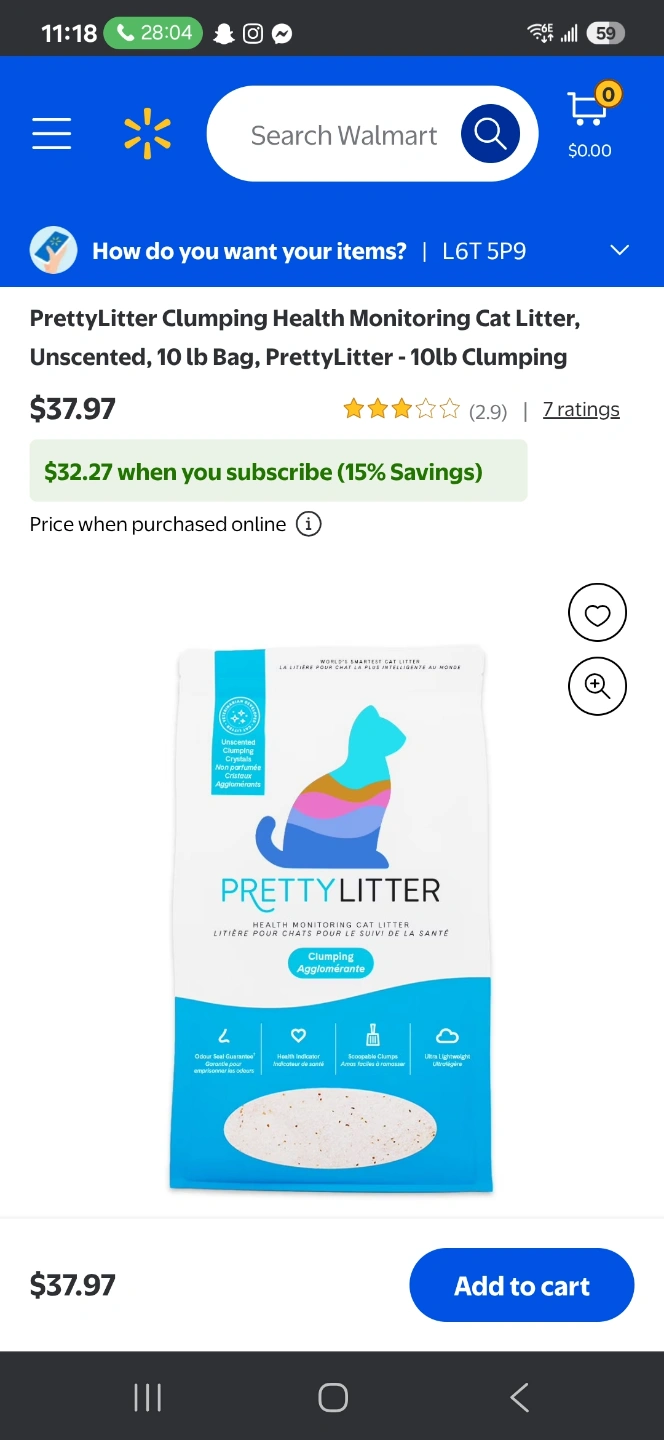 102PrettyLitter Clumping Health Monitoring Cat Litter, Unscented, 10lb Bag, lightweight Retails for $38 plus tax, almost $43 Price is firm $30 Only 1 available