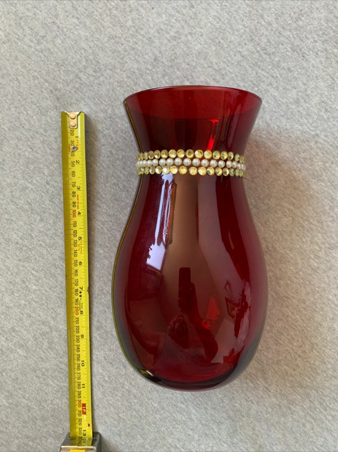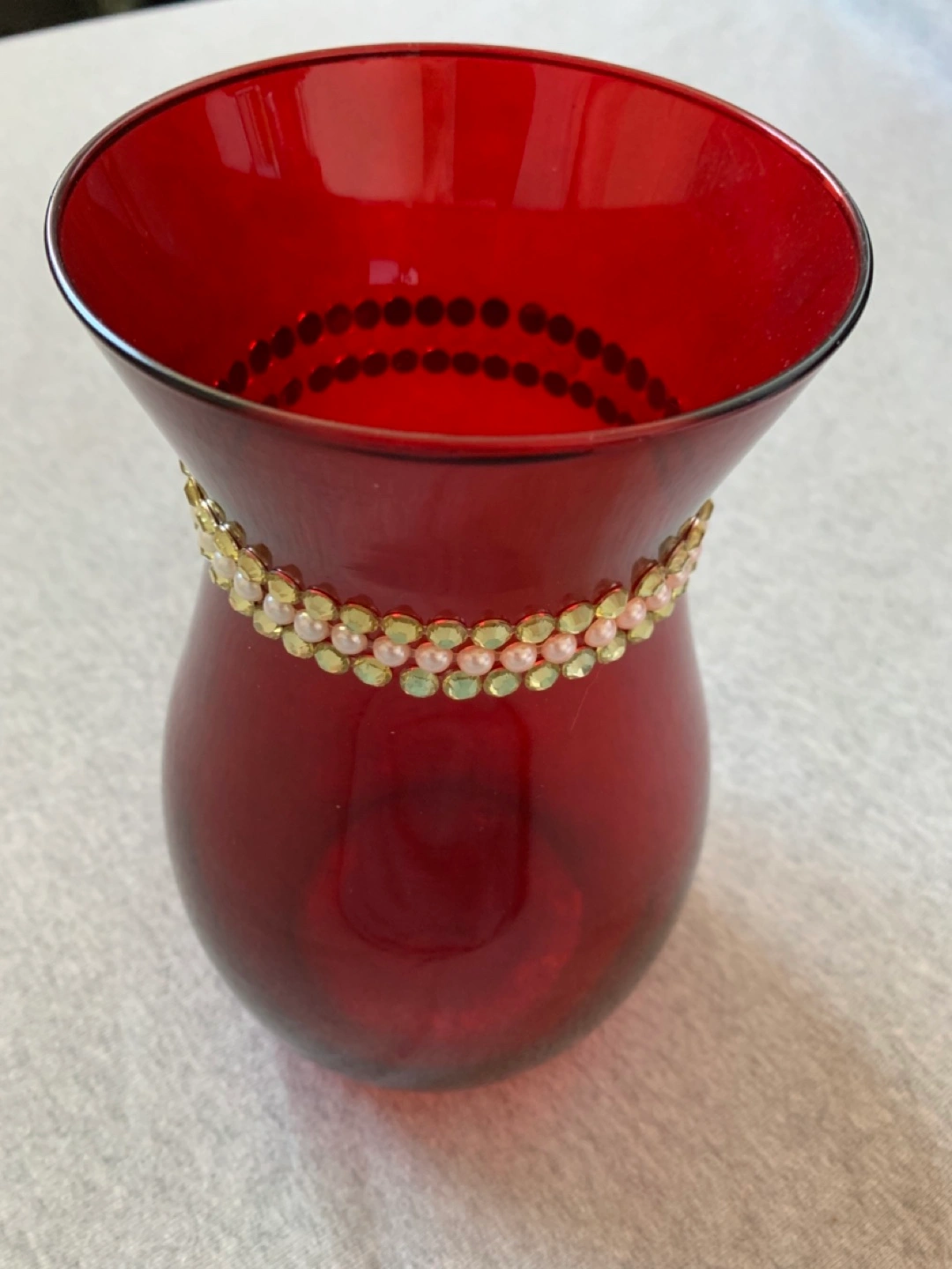 Features a band of pearls and rhinestones crafted and placed around the middle.