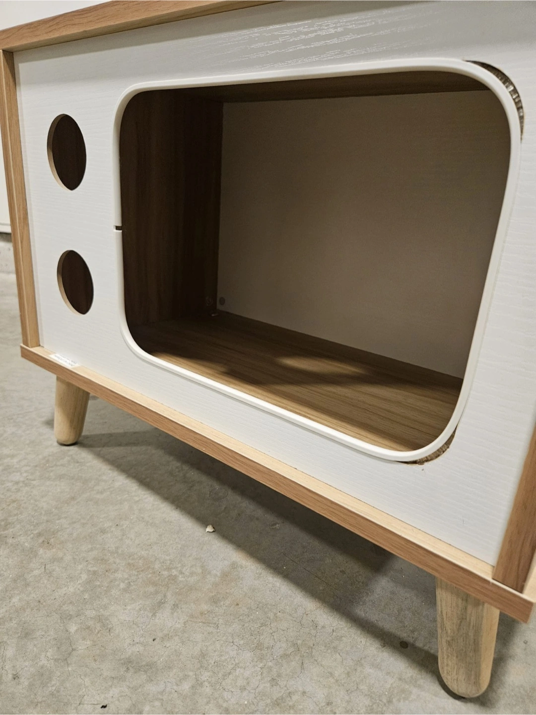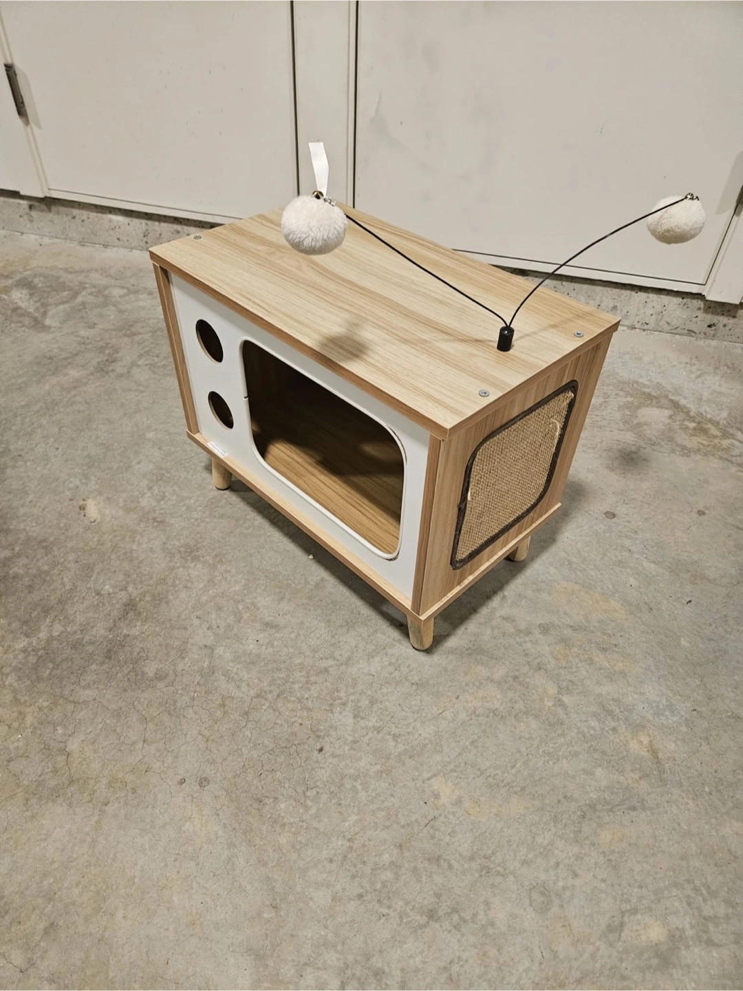 Cats never really used it. Minor wear on the scratch patch. Still has a lot of life. Also throwing in an enclosed litter box. Used but still very functional!