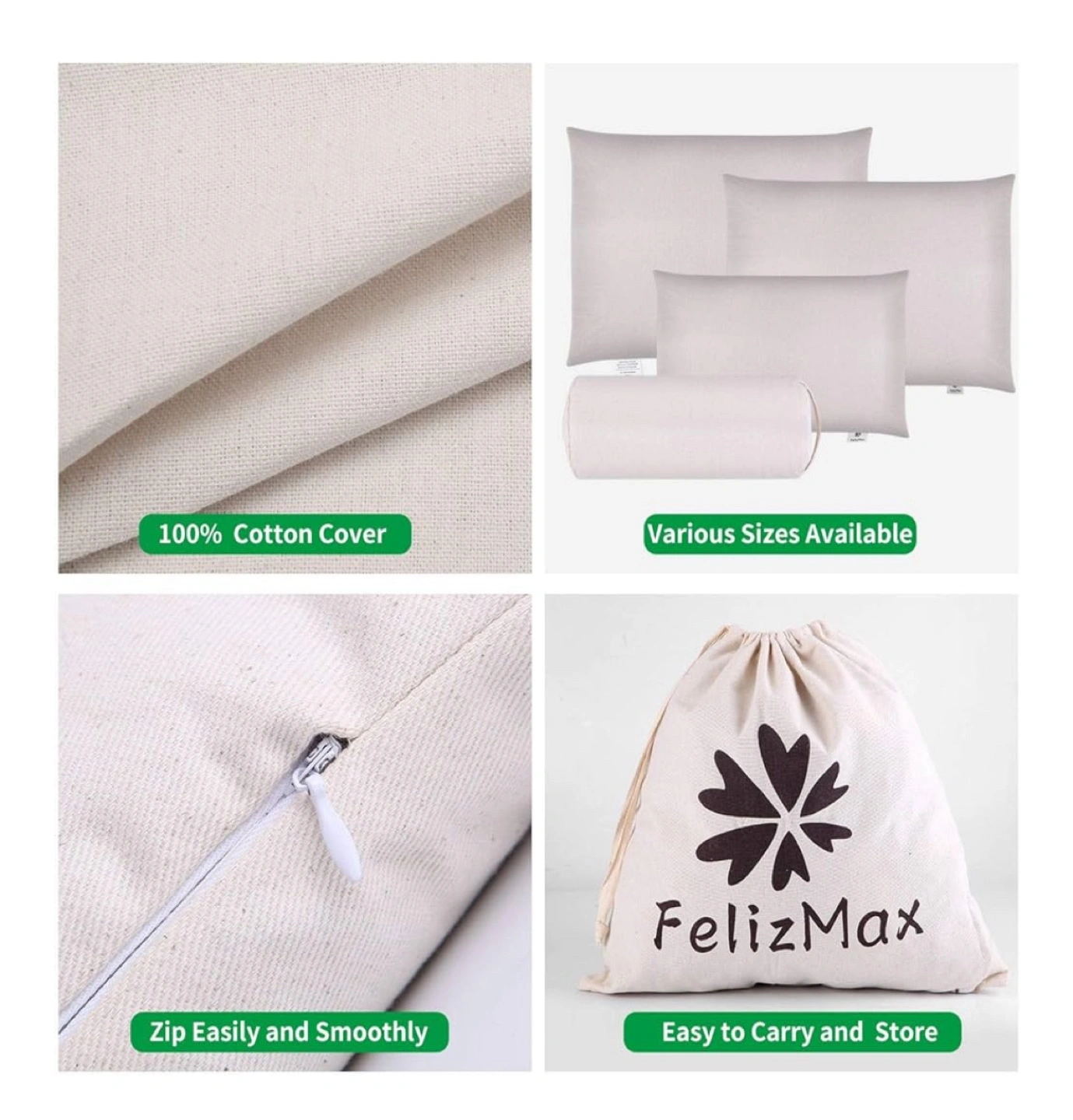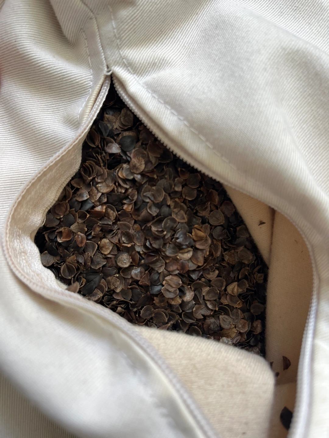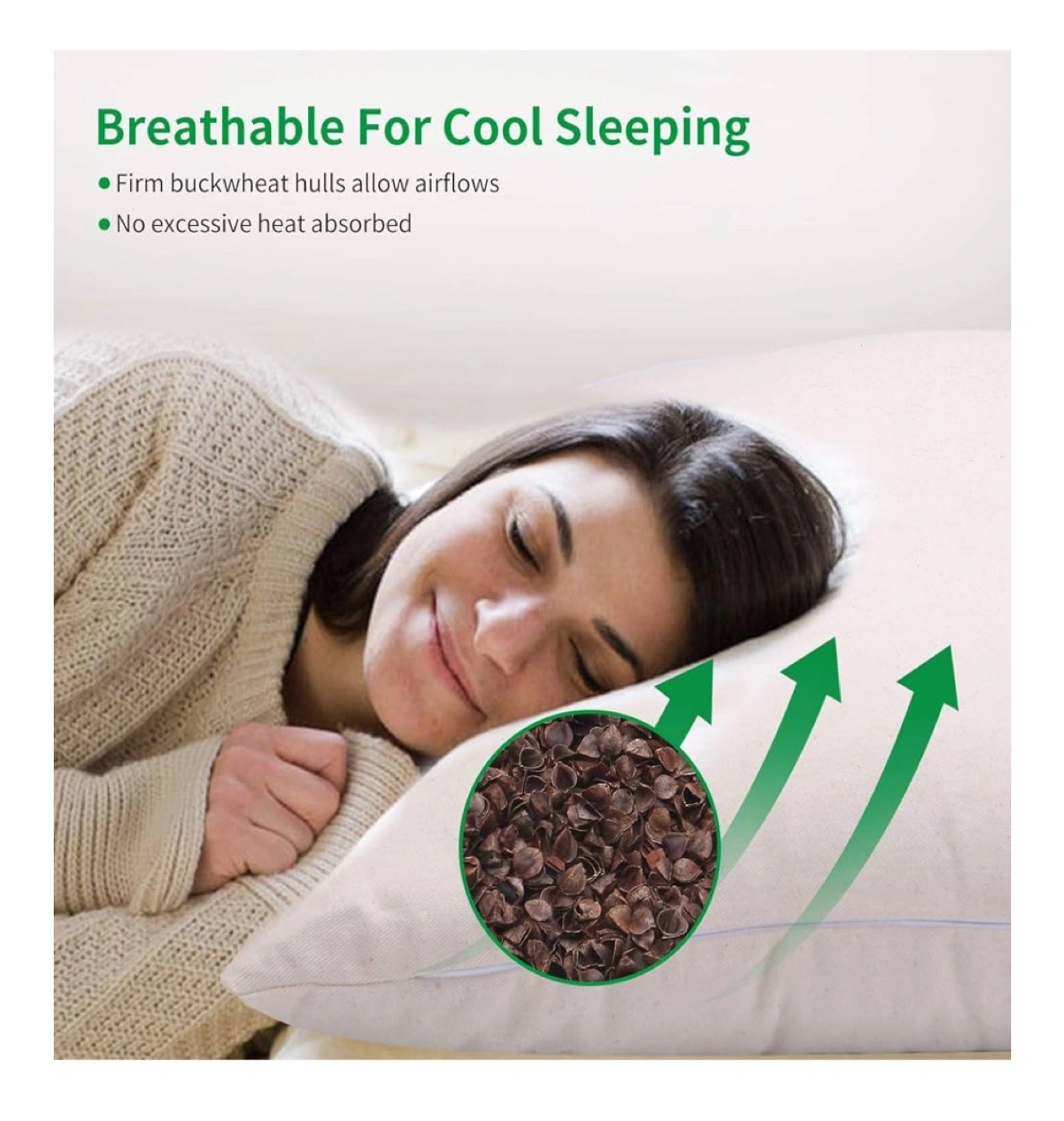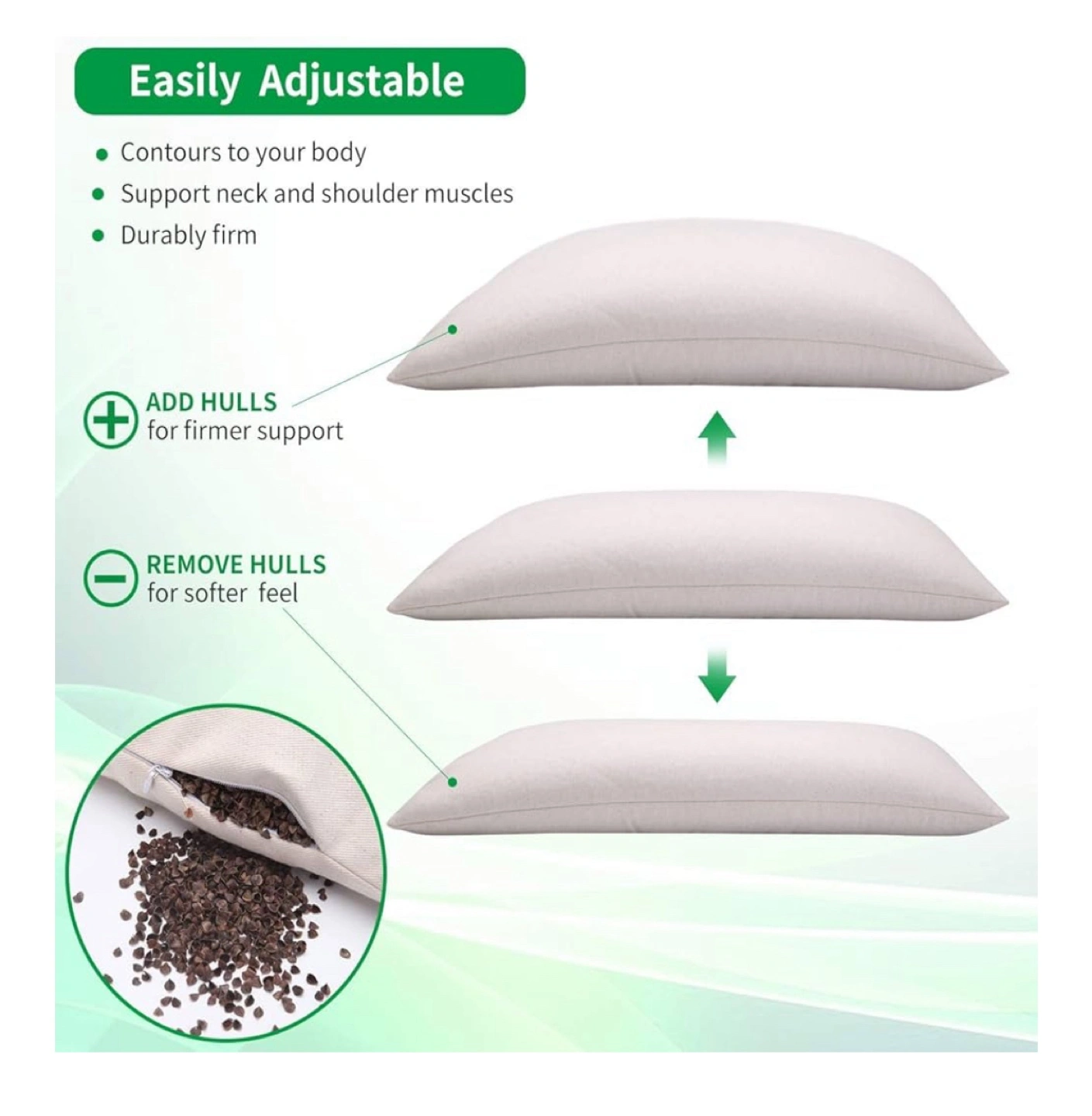 Small buckwheat hull pillow. Measures 14" x 20". Filled with buckwheat hulls. White cotton cover.