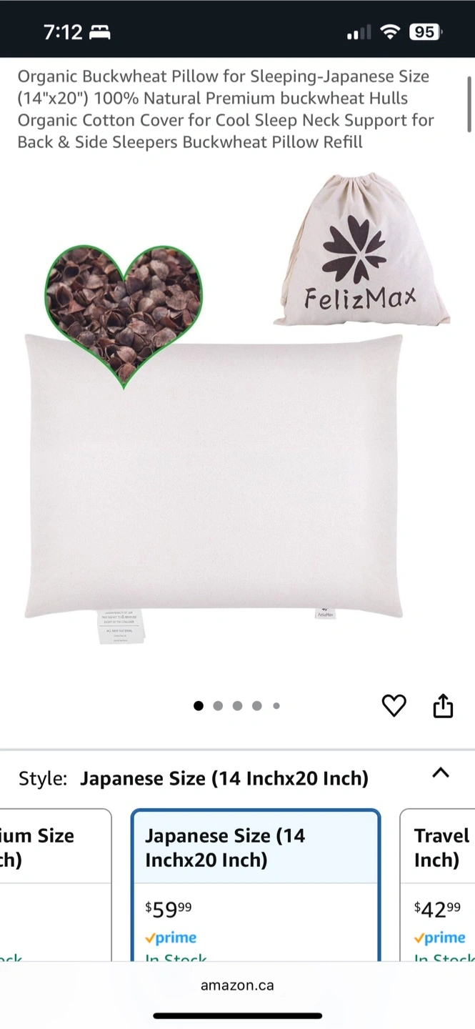 Traditional Japanese Buckwheat Hull Pillow 14" x 20"