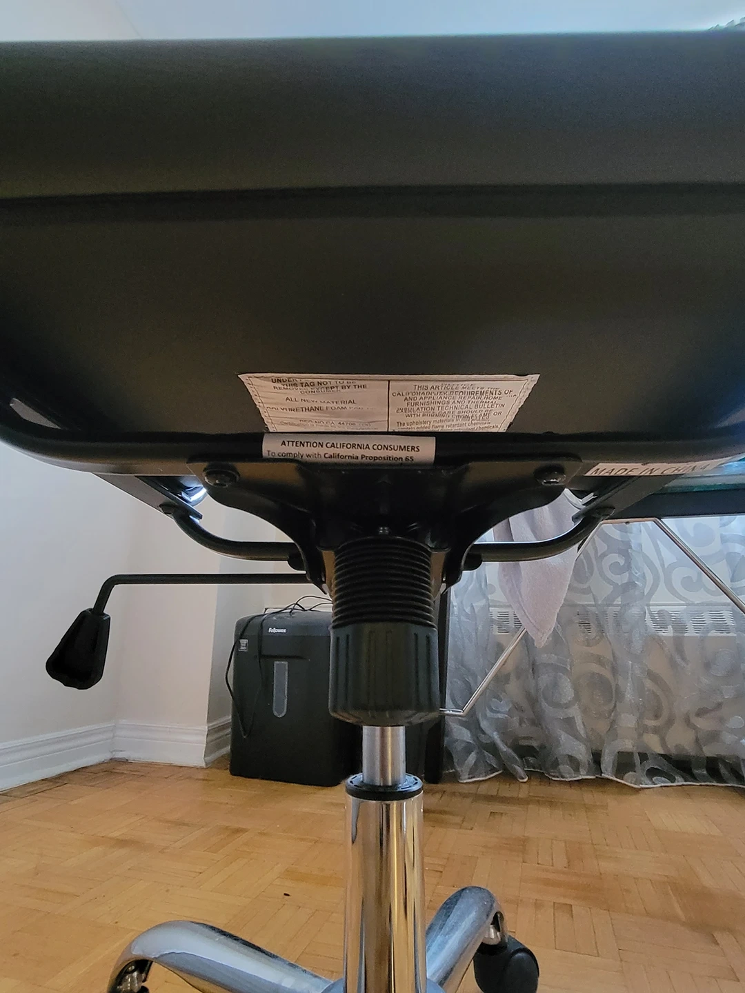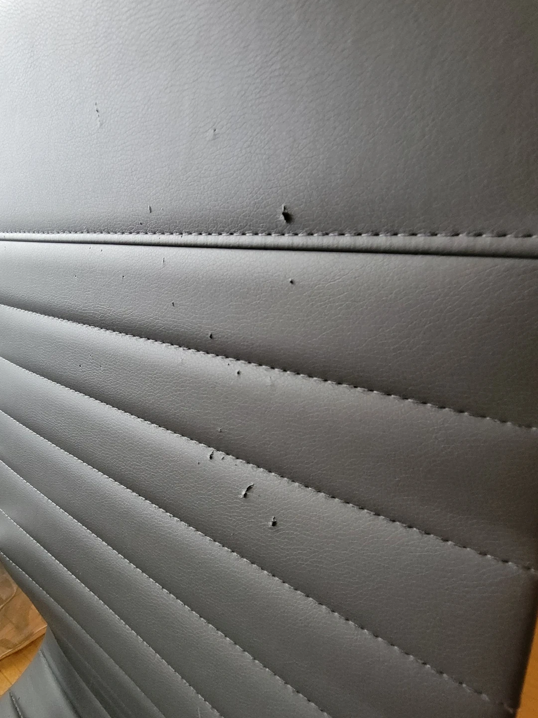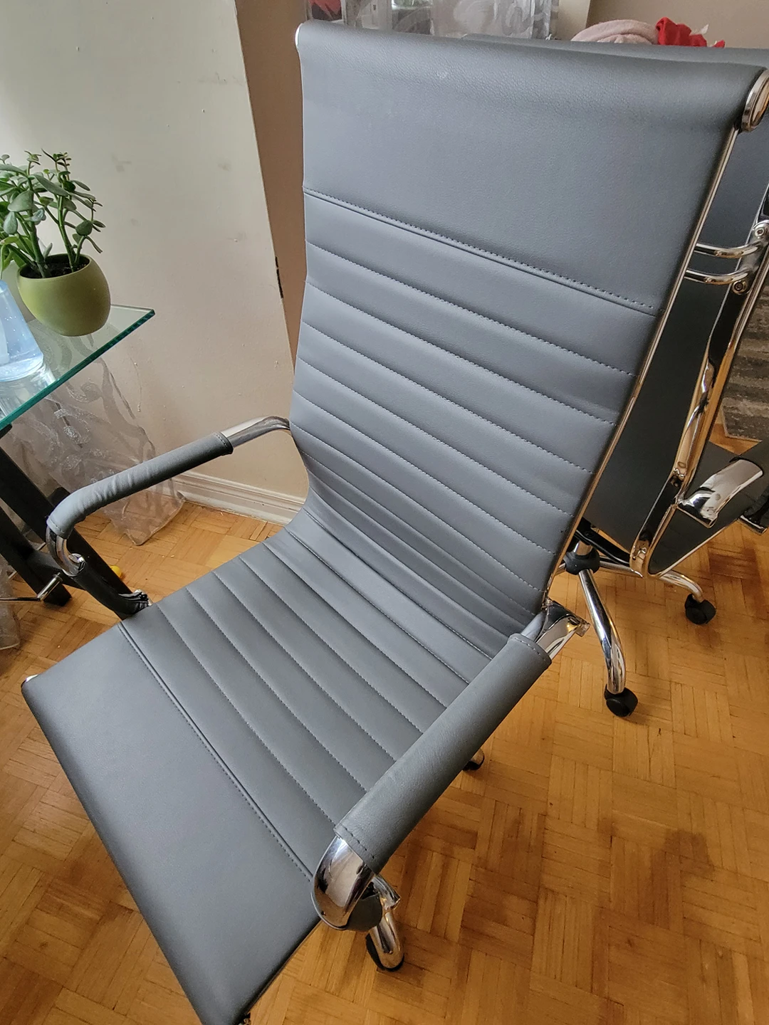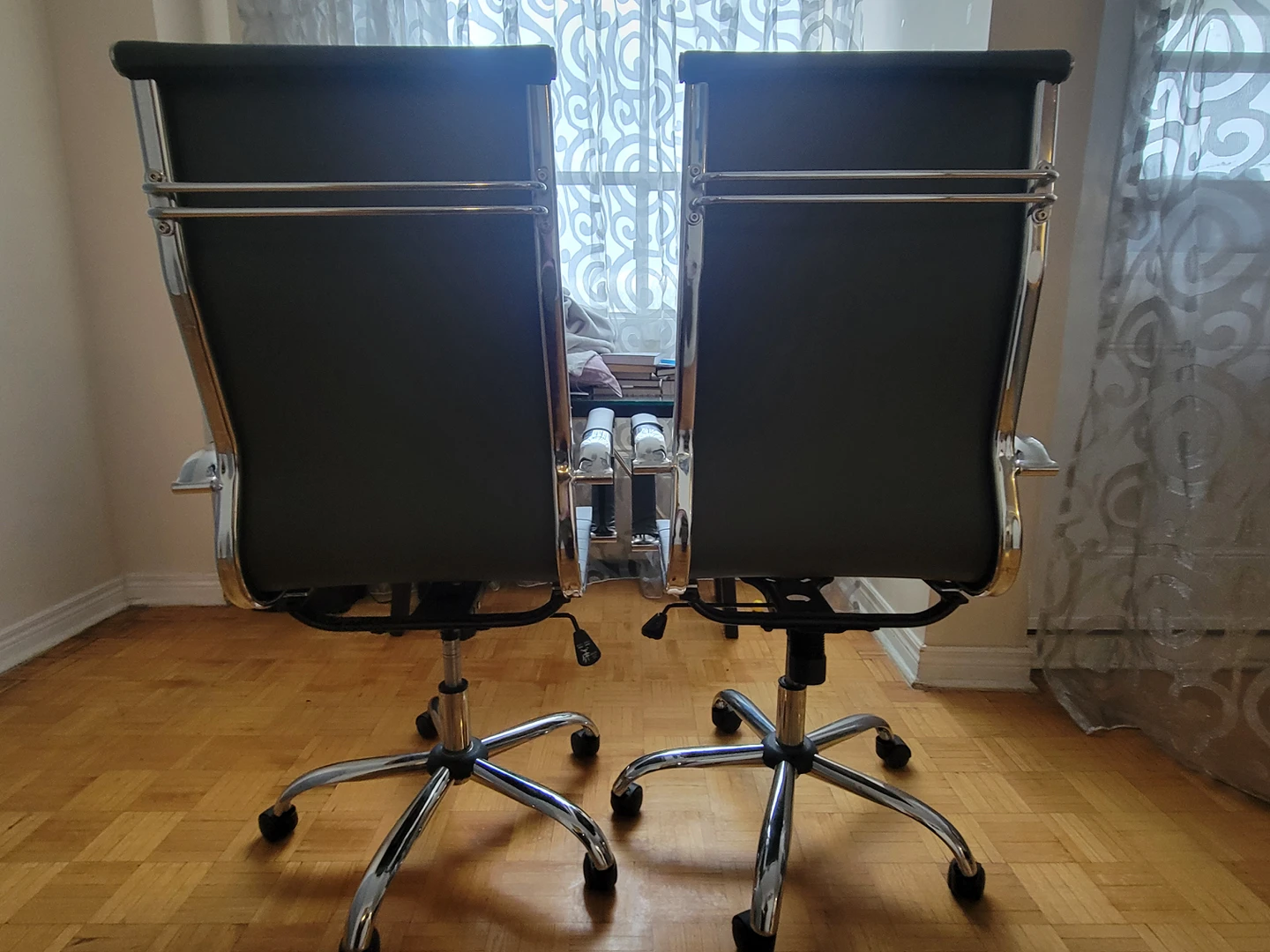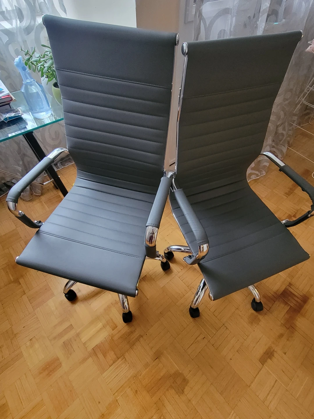 Great condition chairs. Unfortunately one of them has cats scratches as shown on the picture. No other damages or scratches or stains. Absolutelly working condition with Hight regulator
