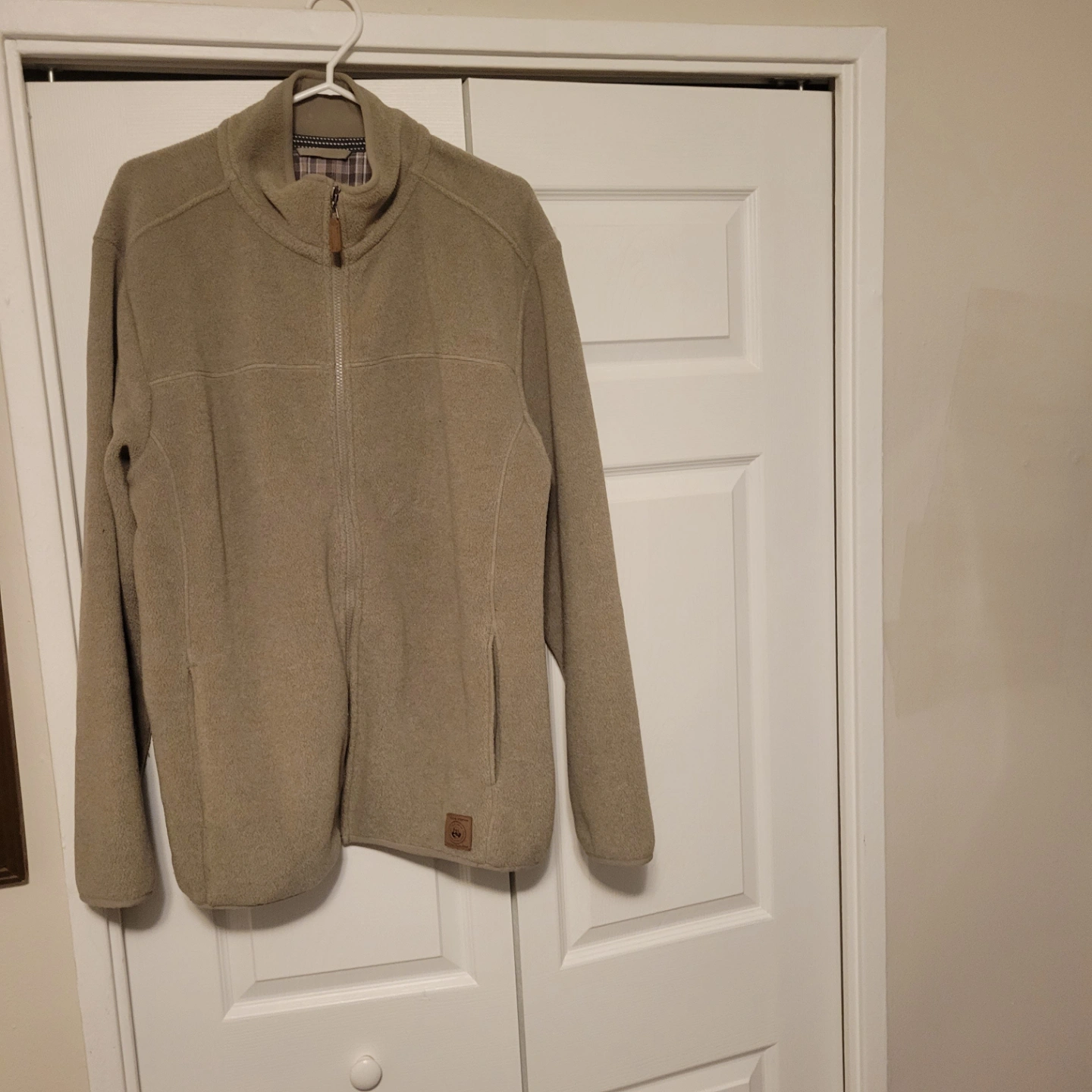 Selling this Full zip fleece jacket. Features a stand-up collar and two pockets. Lined with plaid fabric at collar. Worn once selling for $10.00