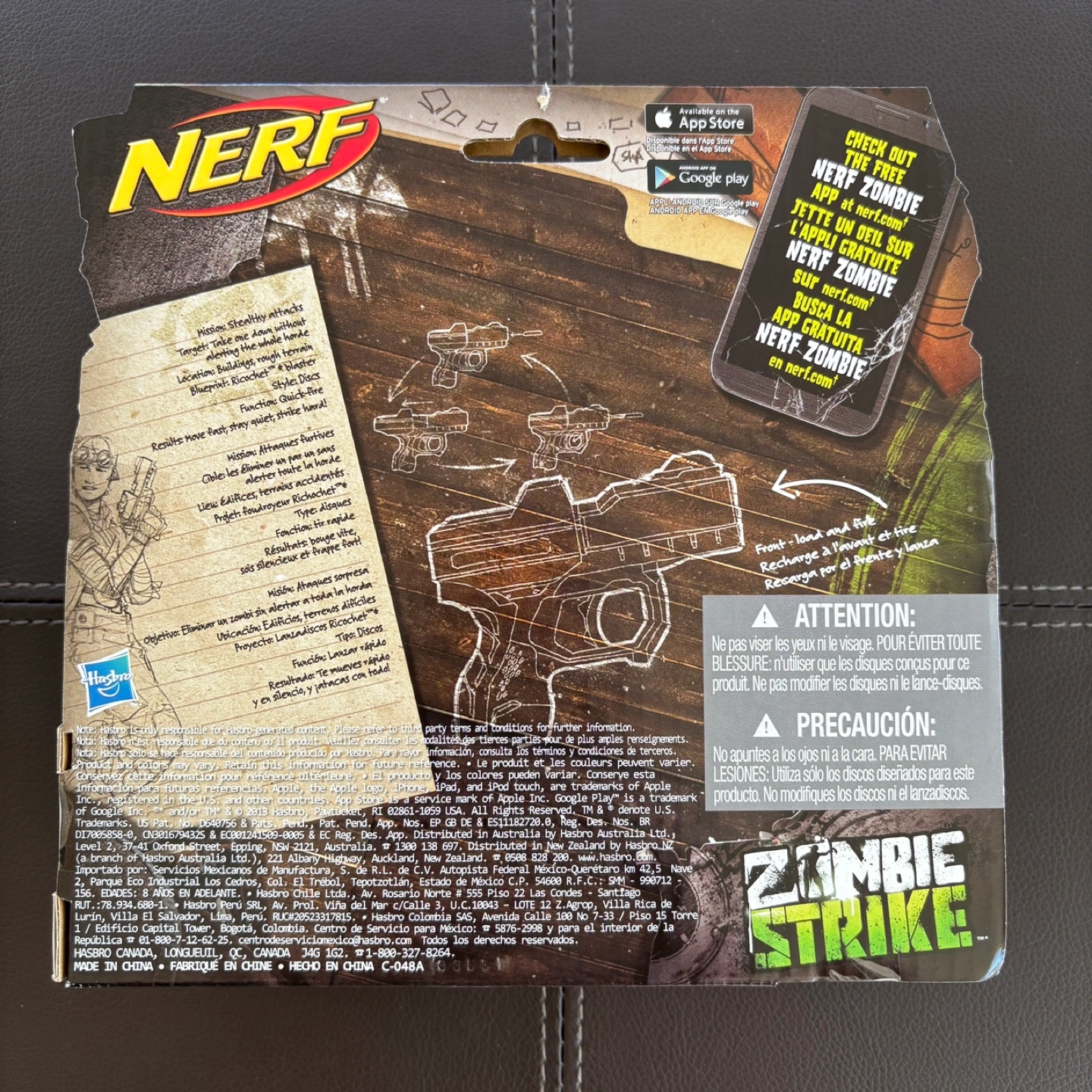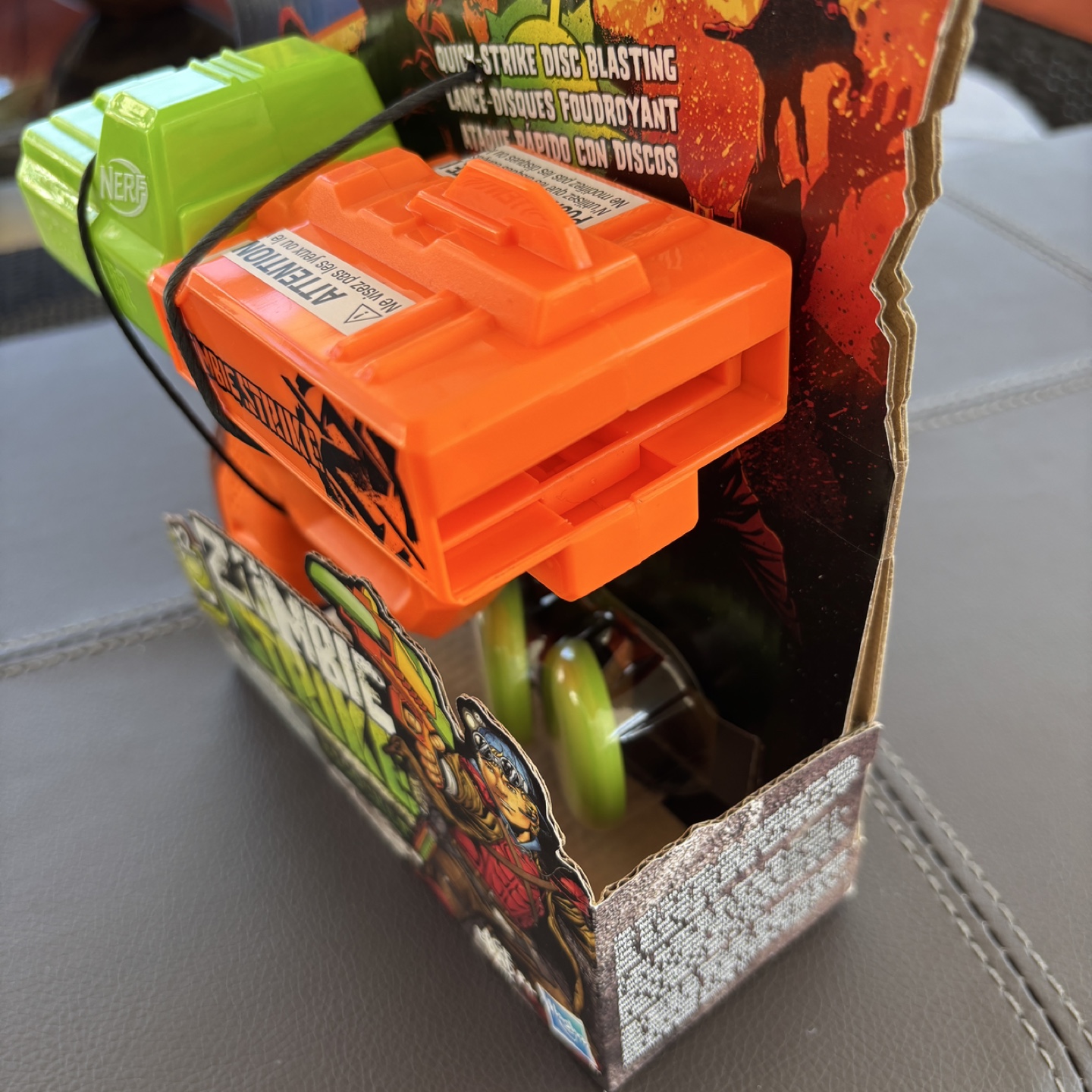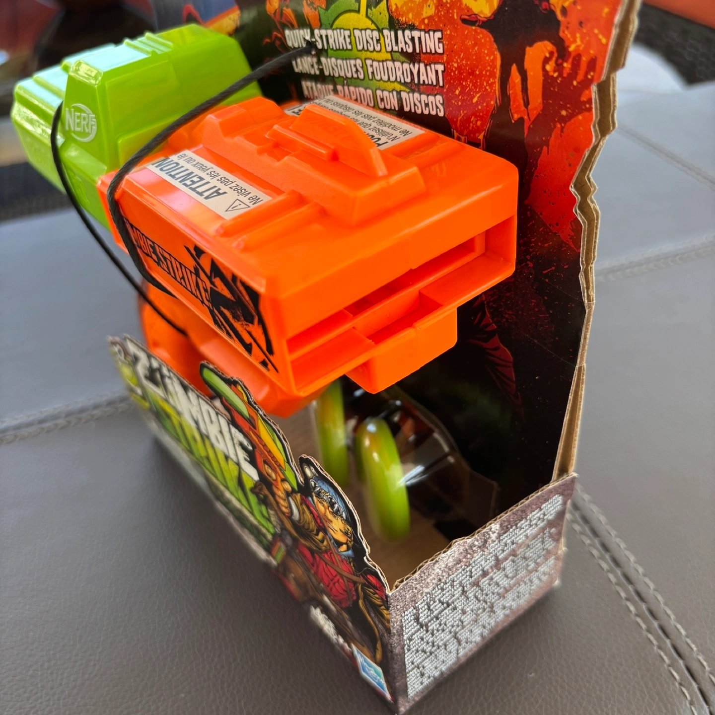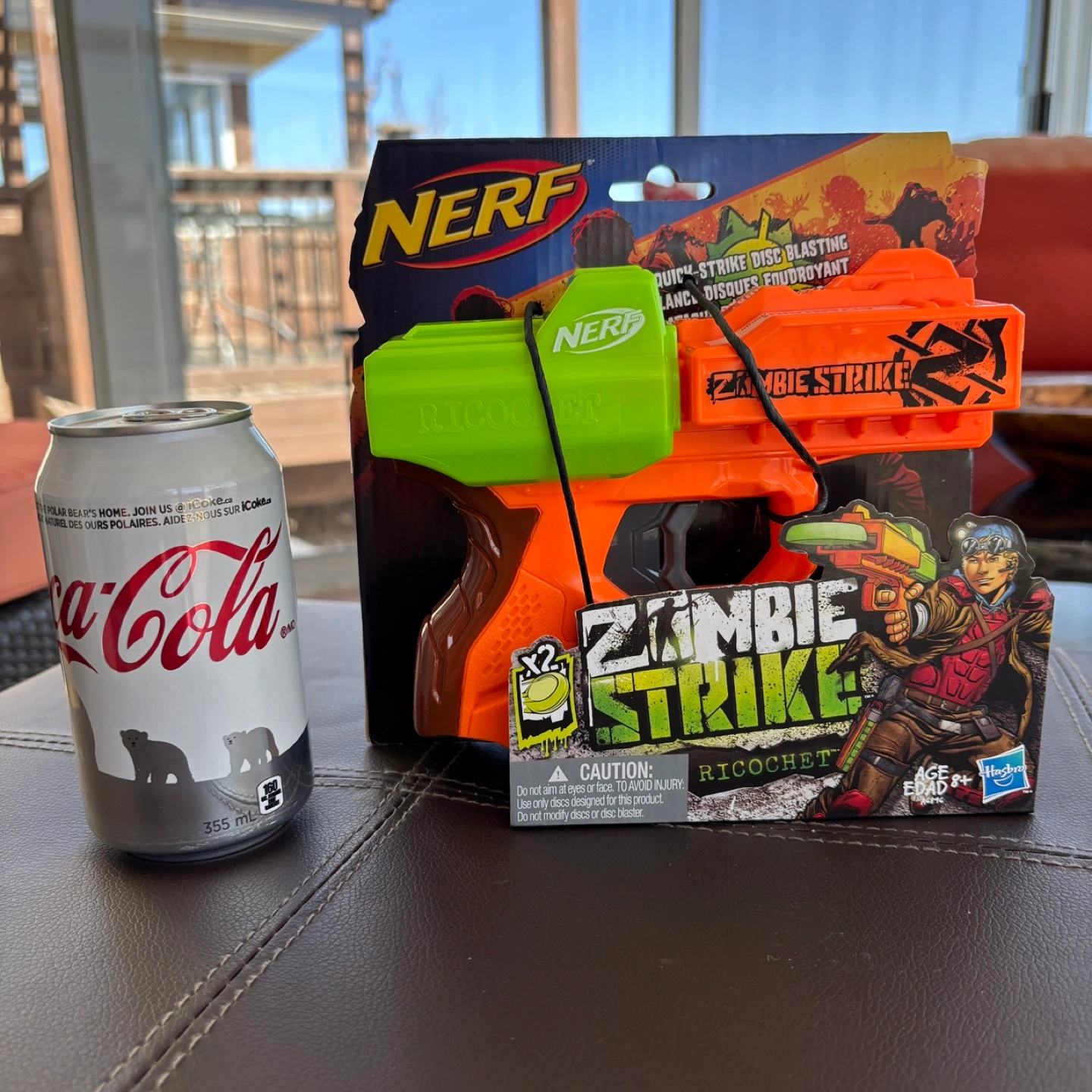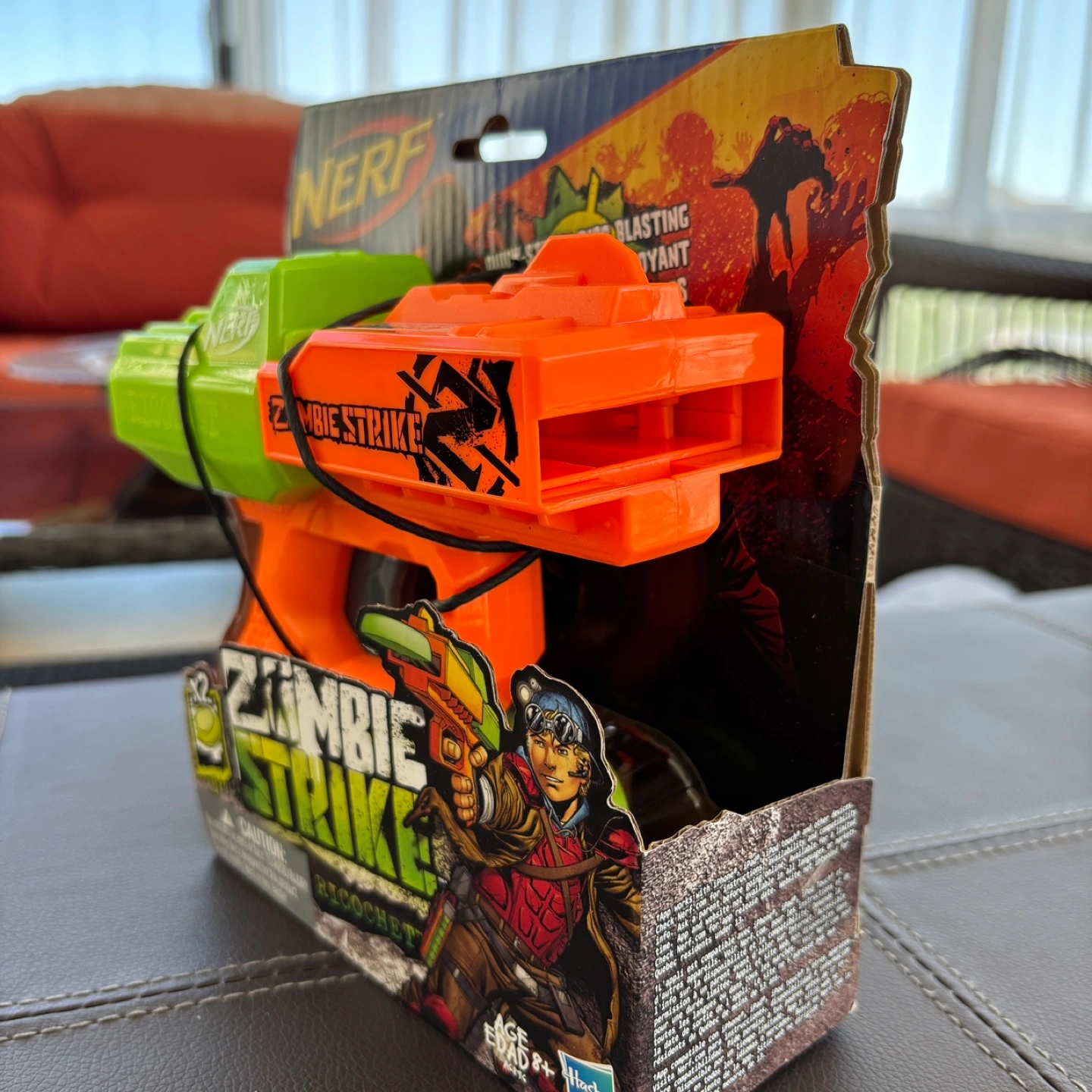 Brand new NERF Zombie Strike Ricochet blaster. Includes two discs. Great for kids. Ages 8+. Still in original packaging.