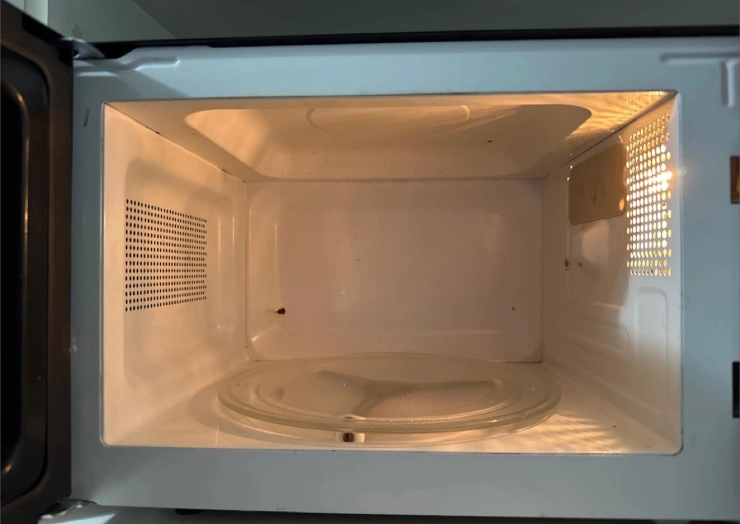 Black microwave. 700W. Digital controls. Pre-programmed settings. Rotating plate. Used condition. Make an offer.