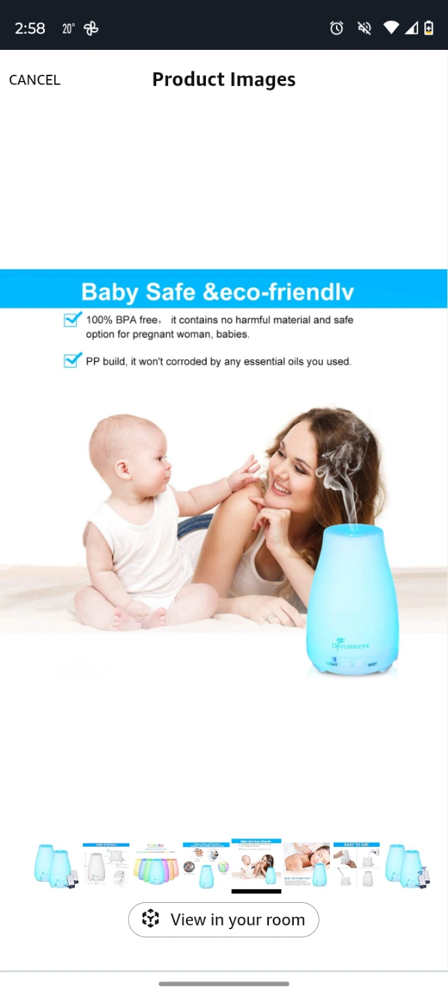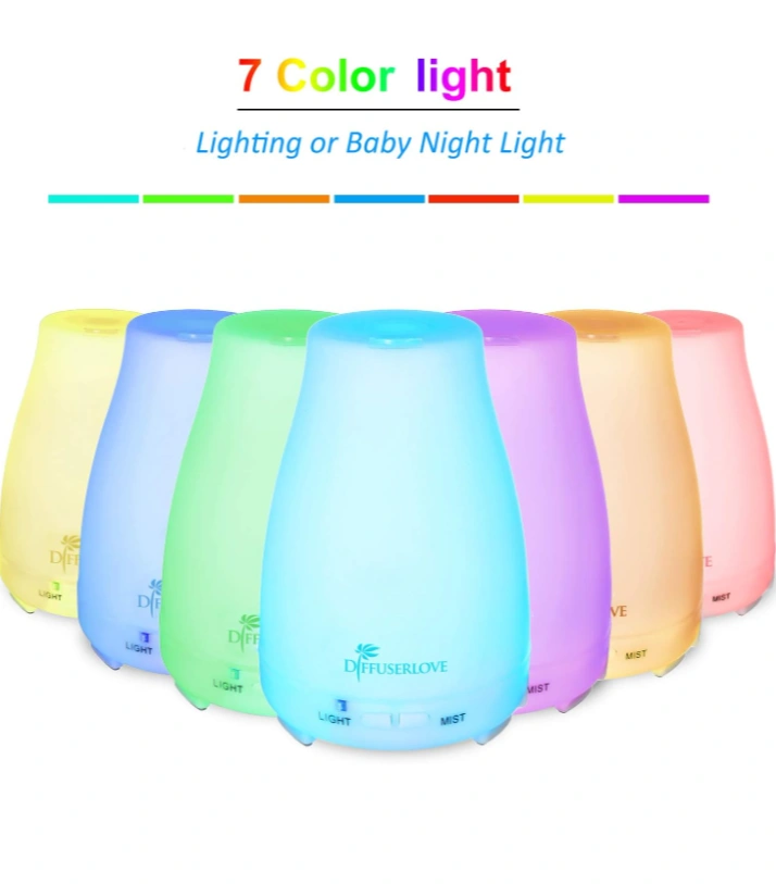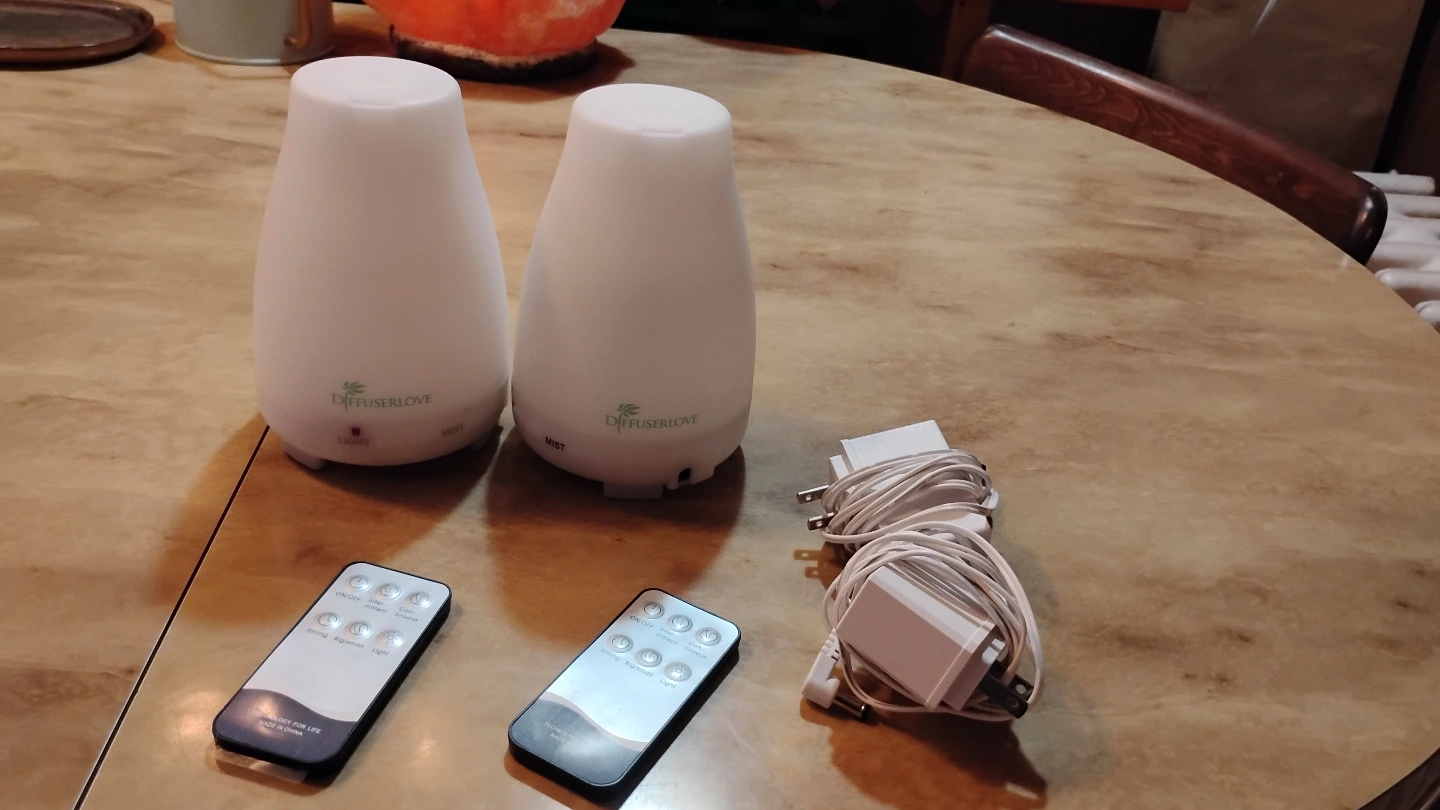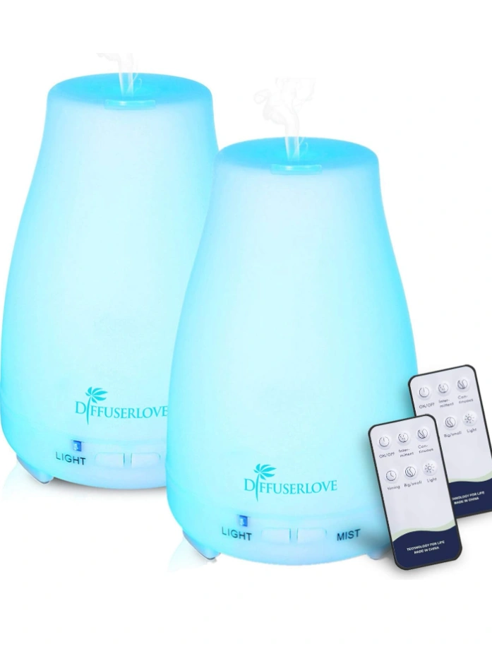 Two ultrasonic essential oil diffusers. Seven colour changing LED lights.