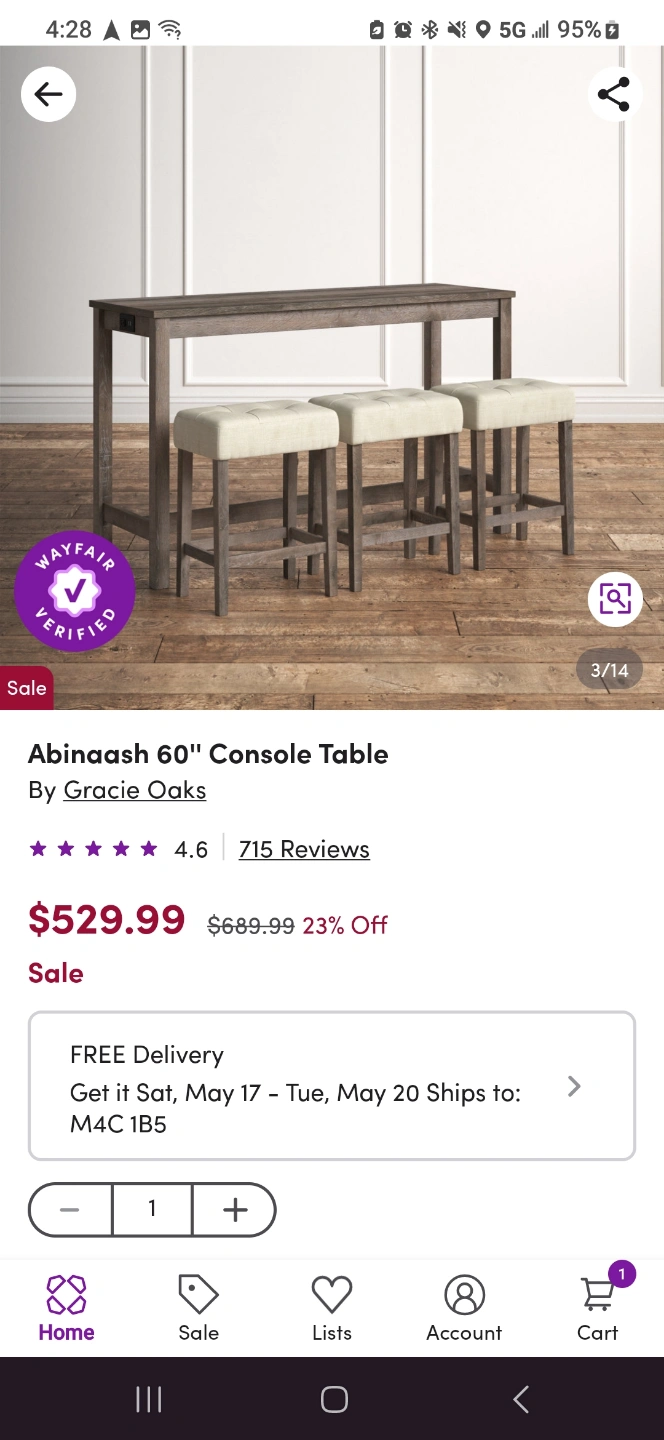 60" Console Table with 3 Stools (Wayfair) π