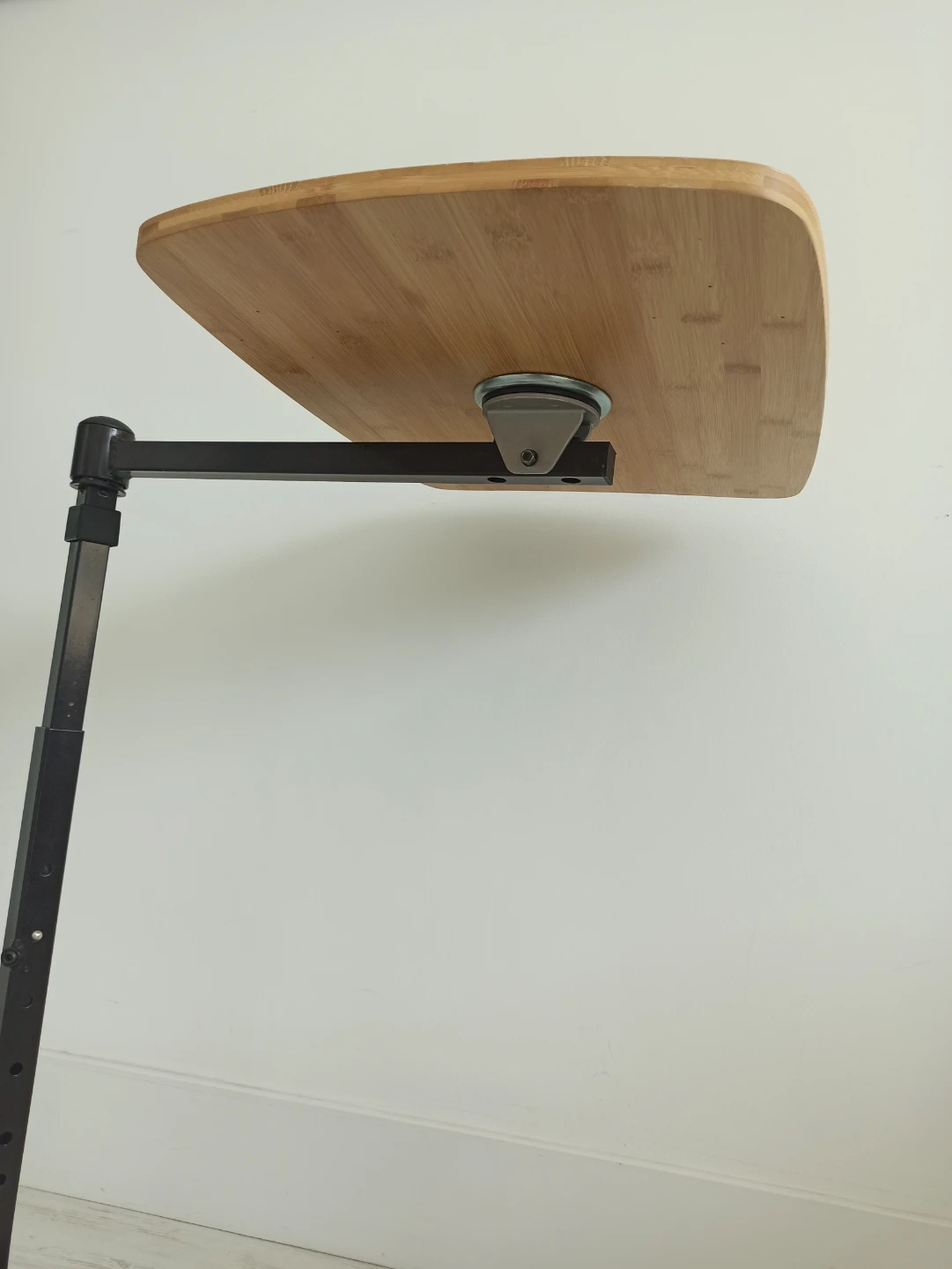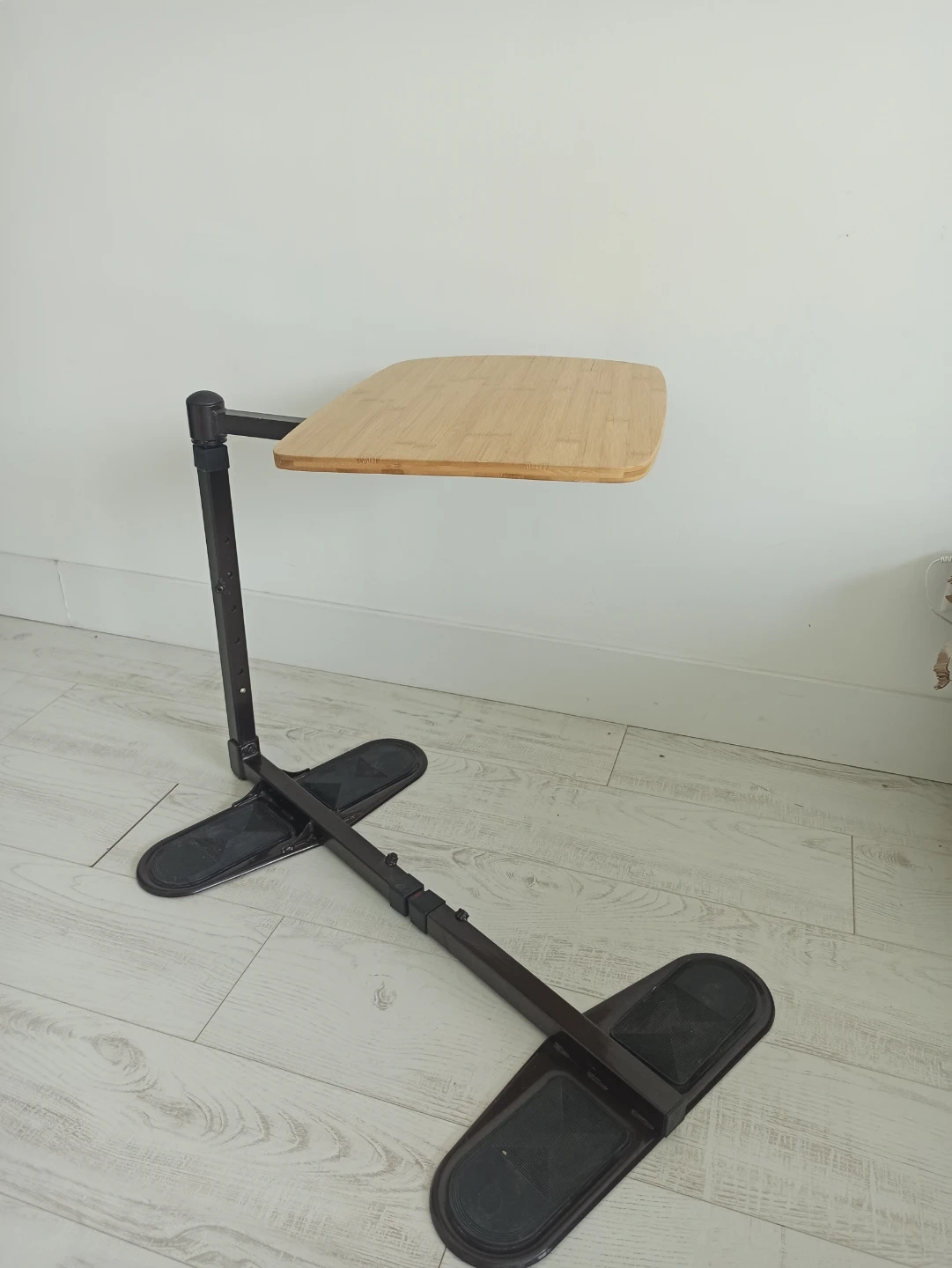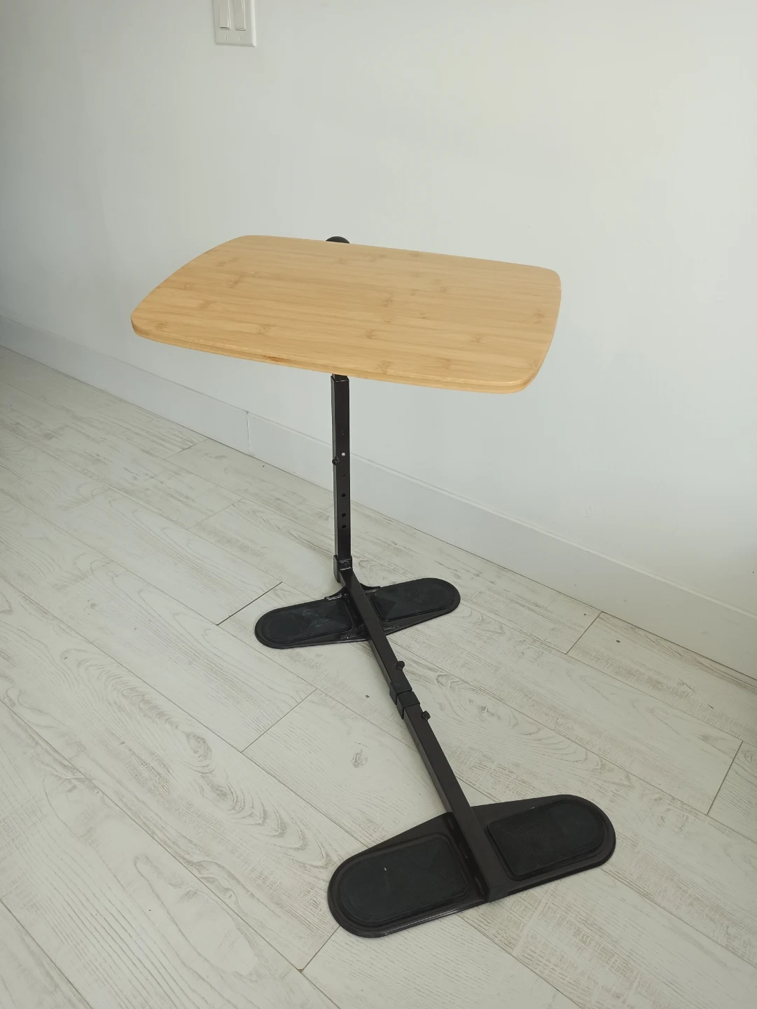Portable laptop table. Bamboo surface, foldable metal legs. Great for working from bed or couch. Easy to store.
