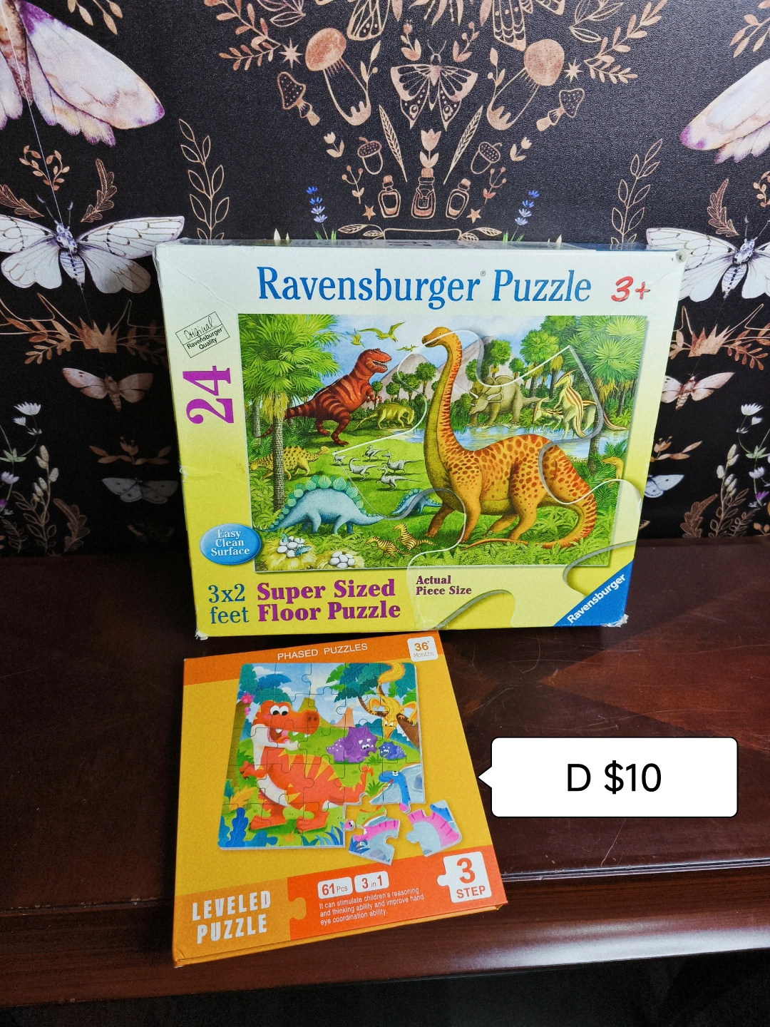 Dinosaur Puzzles - 24 Piece Floor Puzzle + 3 Magnet Puzzle