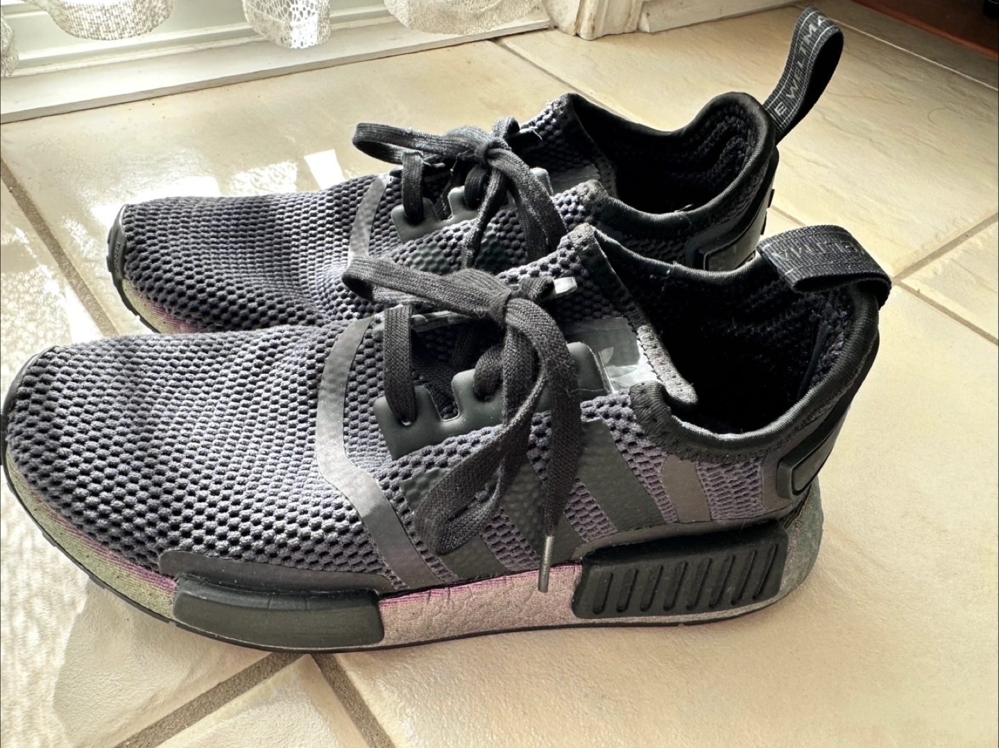 Pre-owned Adidas NMD_R1 running shoes. Black colourway. Boost technology. Excellent for everyday wear or running.