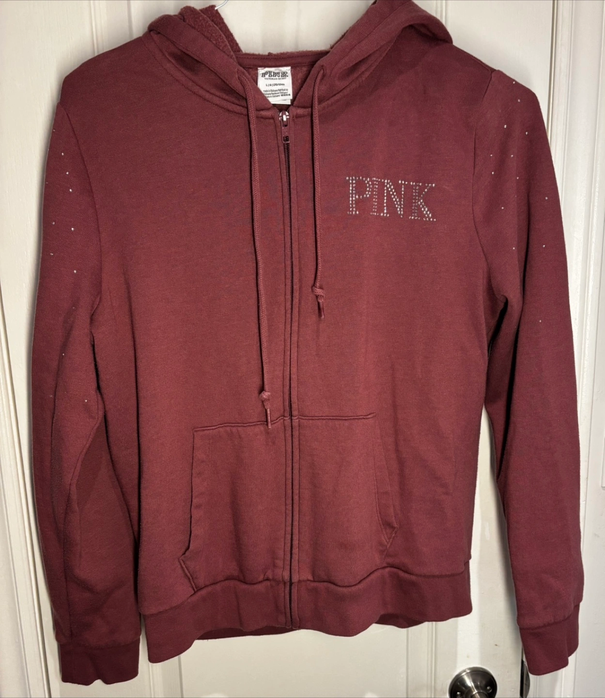 PINK Victoria's Secret Bling Logo Zip Cozy Hoodie Size Large