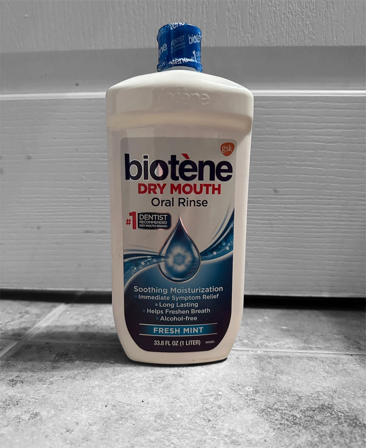 Alcohol-free mouthwash. Soothes and moisturizes. Provides immediate symptom relief and long-lasting fresh breath. 33.8 fl oz (1 litre).