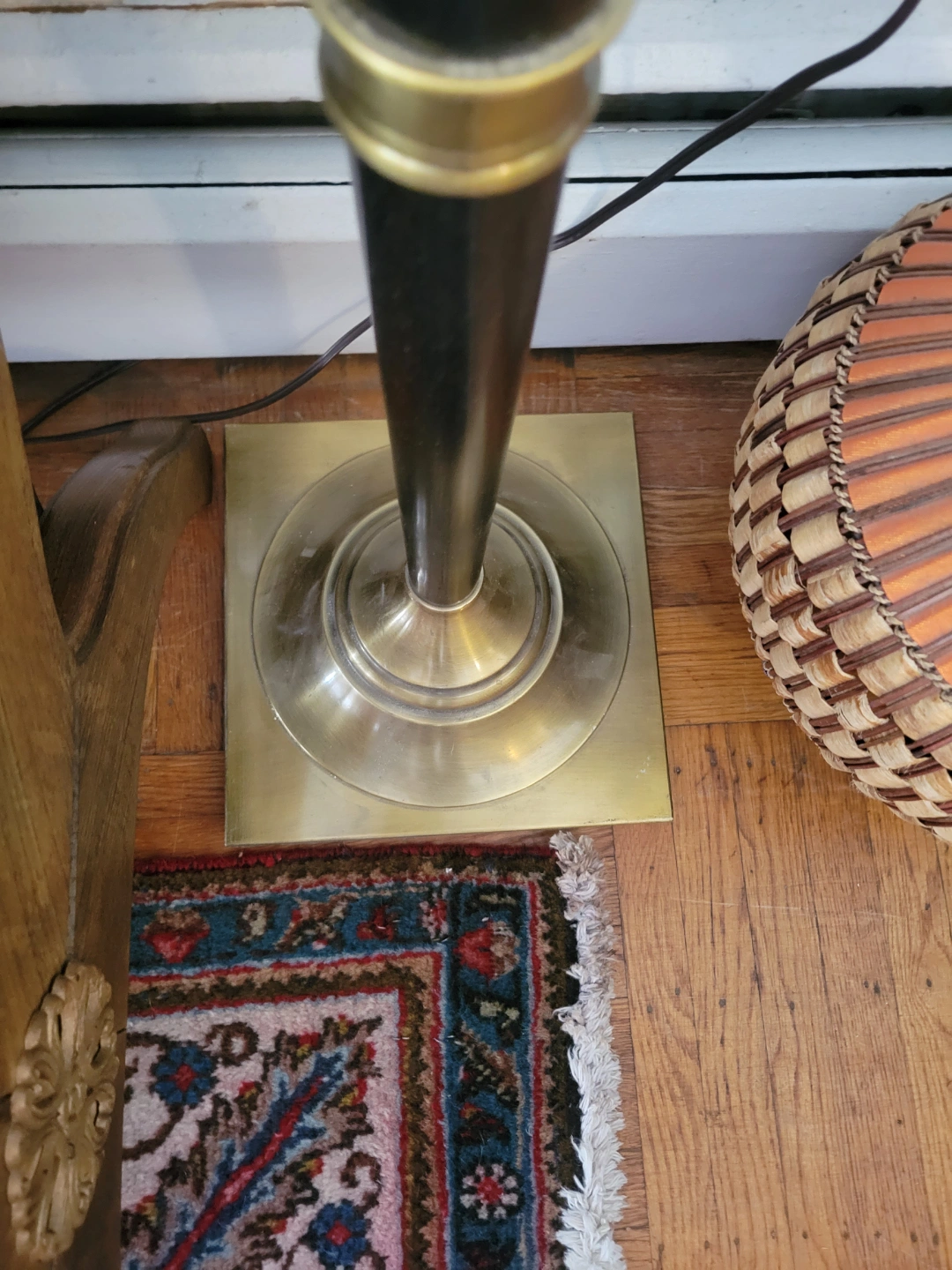Black & Gold Floor Lamp with a Beige Shade