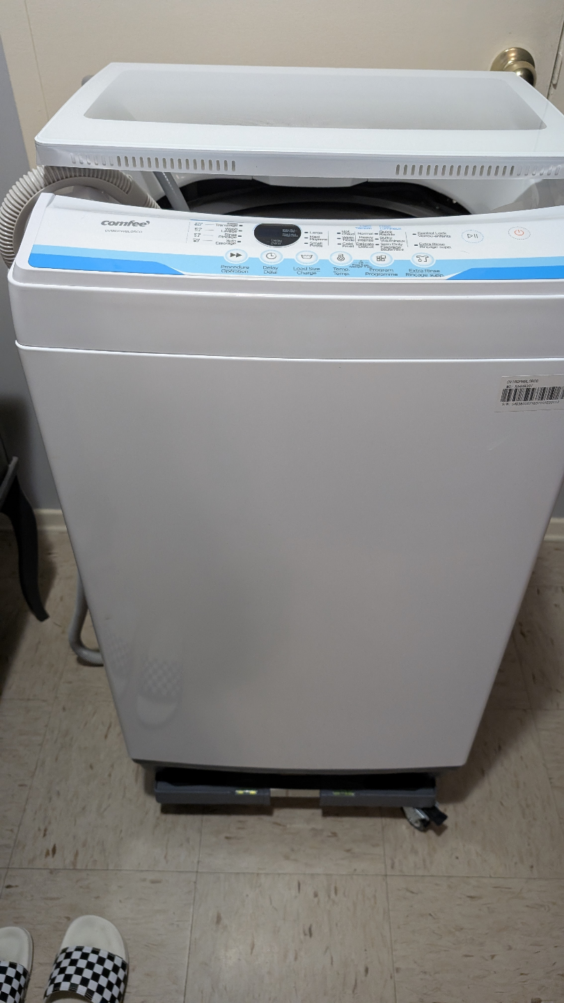 Clean portable washing machine. Multiple wash cycles. Easy to use control panel. Compact design, perfect for small spaces. Includes hoses. Product Dimensions52.6D x 52.6W x 93H Centimetres BrandCOMFEE' Capacity1.8 Cubic Feet Special featureChild Lock, Easy to install, Easy to use, Easy to store and relocate, Delay Start Access locationTop Load Finish type Mettalic