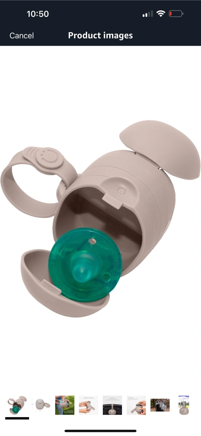 Silicone poop bag holder. Attaches to stroller or leash. Includes a small compartment for a pacifier. Durable and easy to clean.