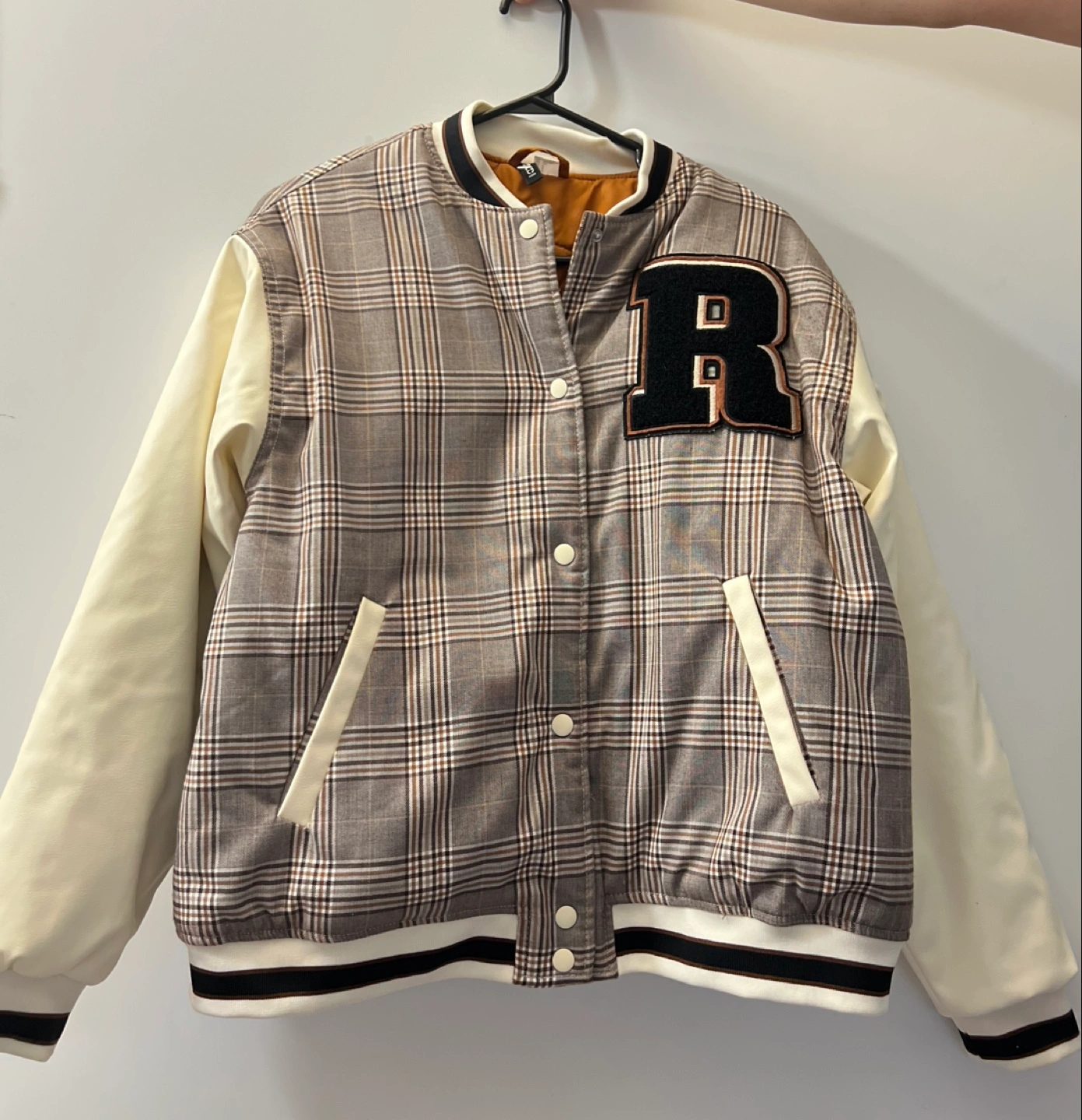Varsity Jacket - Beige and Brown Plaid