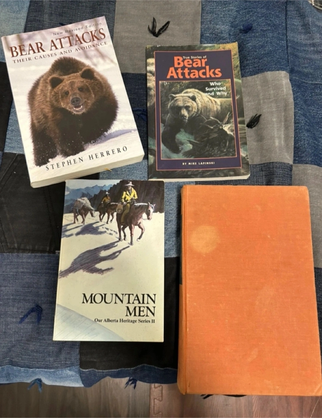 Four books on wildlife and the outdoors. Includes information on bear attacks, survival stories, and mountain men. One book is on big game hunting. Pre-owned.
