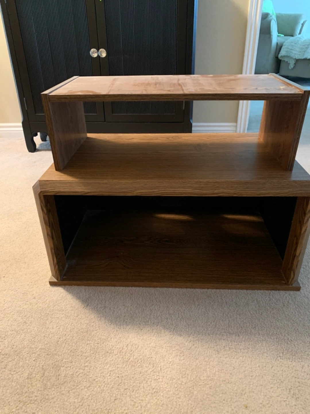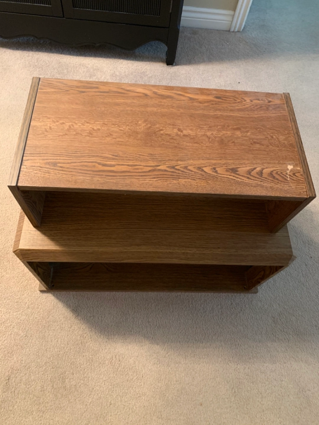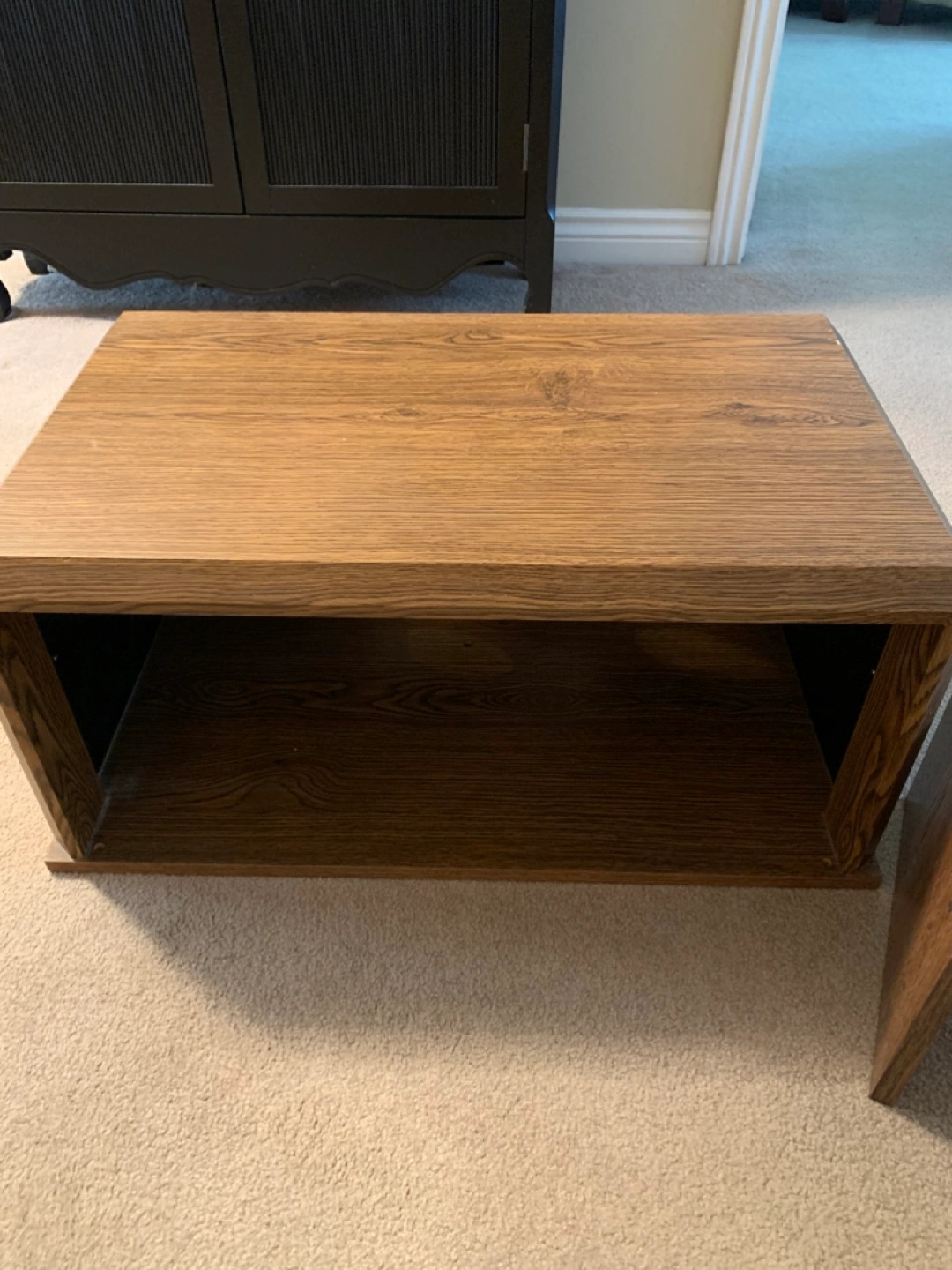 TV stand . Heavy. 29” x 16” x 13”. Was used in closet for extra storage . Free shelf also used in closet . Must go by Thursday night Serious buyers only please. Porch pick up at McCowan and 16th in Markham.