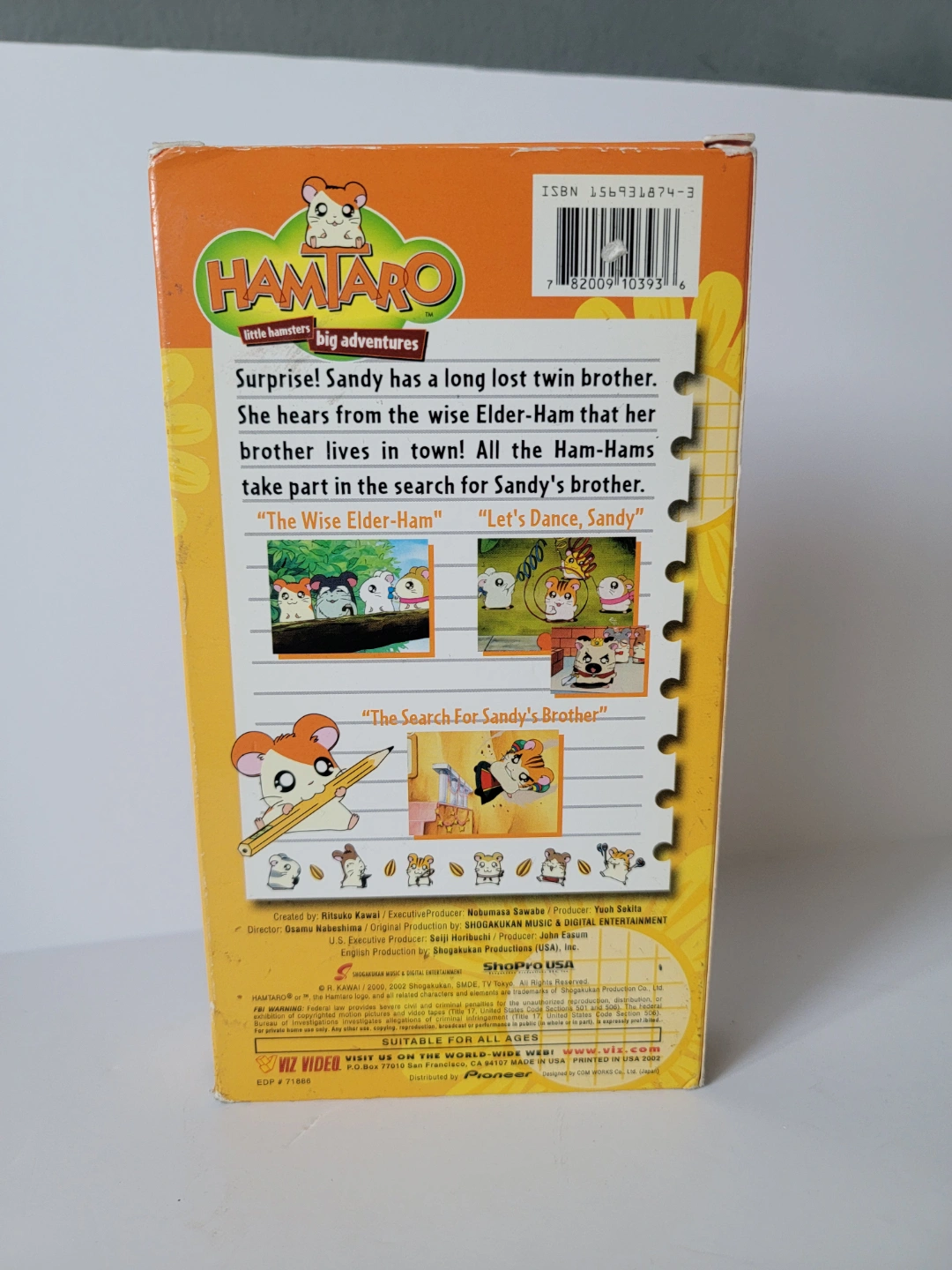 Vintage Hamtaro VHS tape. Features episodes: The Wise Elder-Ham, Let's Dance, Sandy, and The Search for Sandy's Brother. Little hamsters, big adventures!