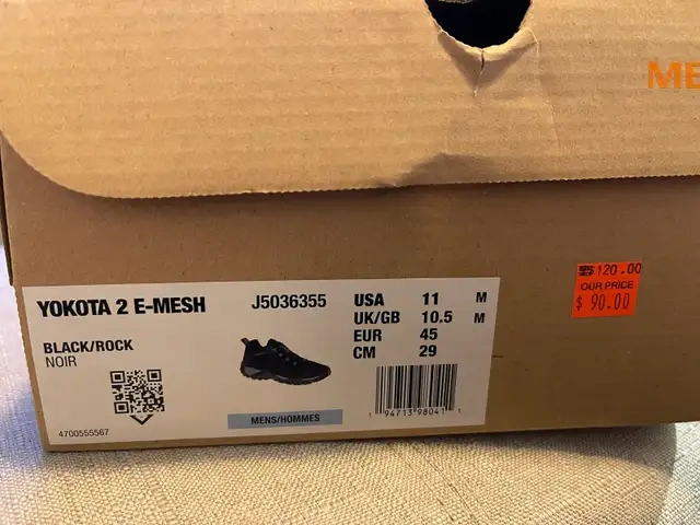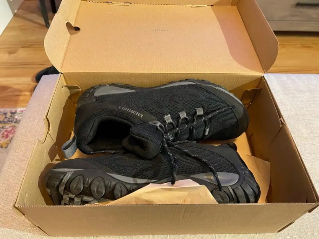 Men's Merrell Yokota 2 E-Mesh hiking shoes. Black/Rock colour. New in box. Never used.