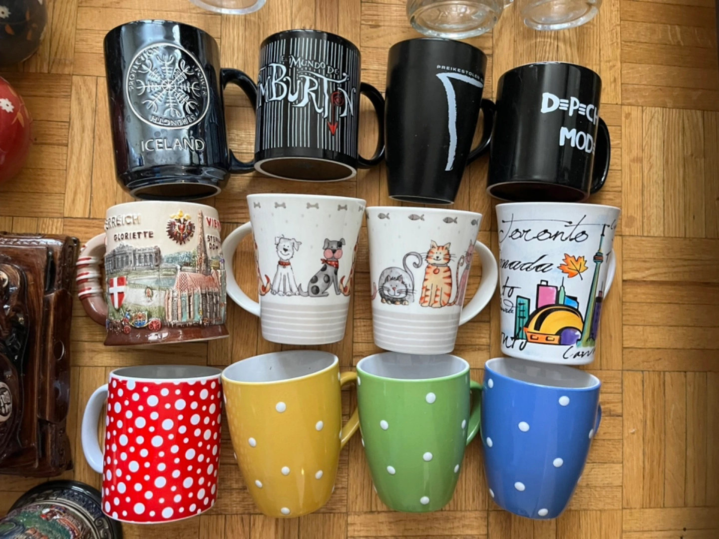 Collection of 14 mugs for $9 Various designs and themes like Depeche Mode, Tim Burton, Yayoi Kusama, Iceland and Vienna are gone.