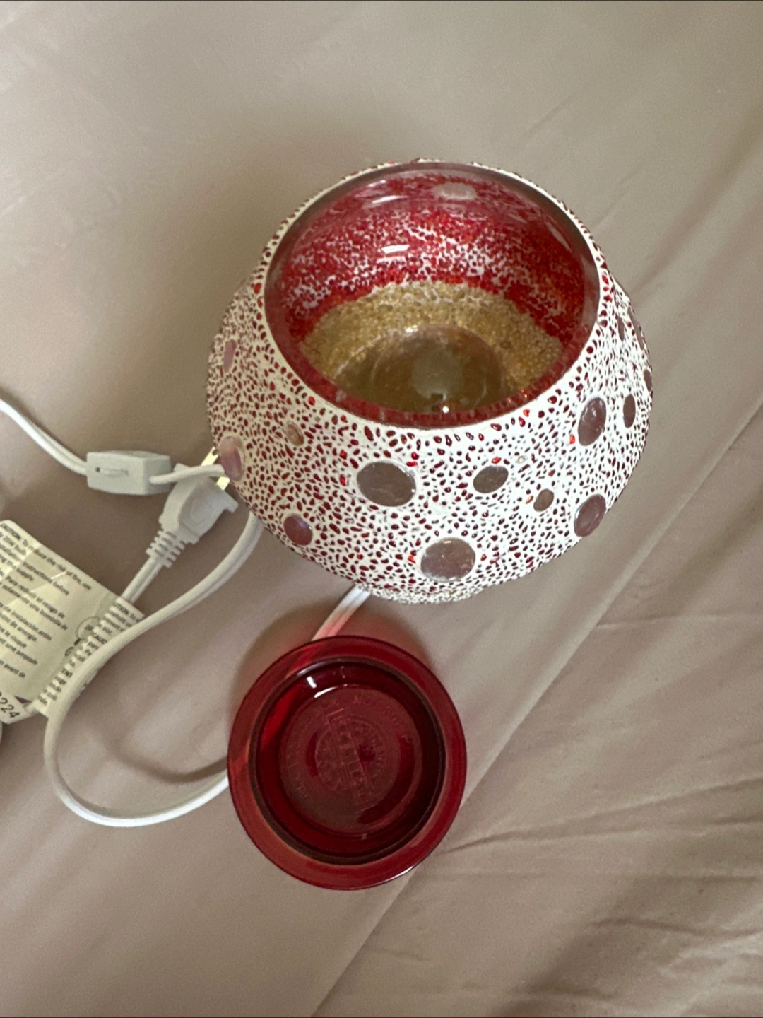 Beautiful Scentsy warmer. Red, golden and white mosaic design. Includes warmer and dish. Gently used.