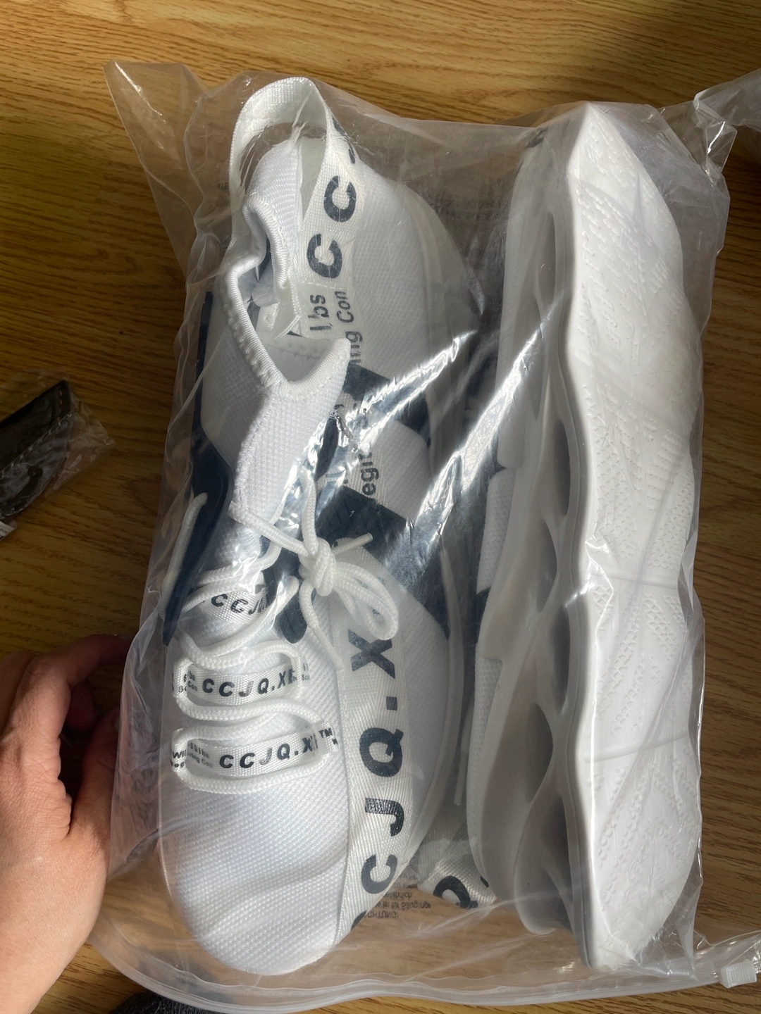 Grab this stylish bundle including a pair of white and black sneakers, a white shirt , and a black. All items are new and in.. Sizes may vary. Ask for more details