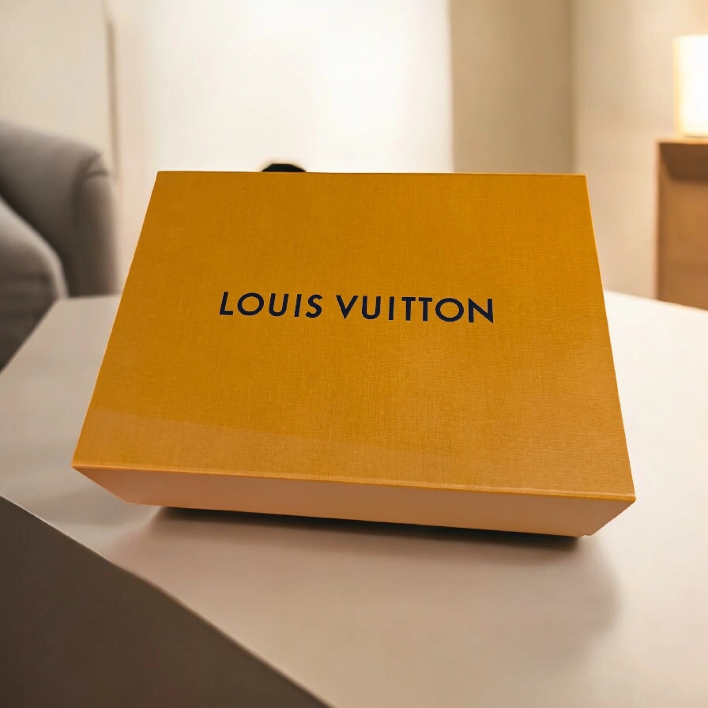 878Description: Selling a 100% authentic Louis Vuitton gift/storage box in excellent condition. Perfect for storing or gifting bags, shoes, accessories, or for decorative use. 📦 Details: • Brand: Louis Vuitton • Box Type: Magnetic flap with blue ribbon pulls • Size: Medium to large (fits most handbags and shoes) • Condition: Gently used; clean interior and exterior • Includes: Box only (no dust bag or receipt) 💡 Ideal for resale packaging, home decor, or collectors. 36x26x13cm