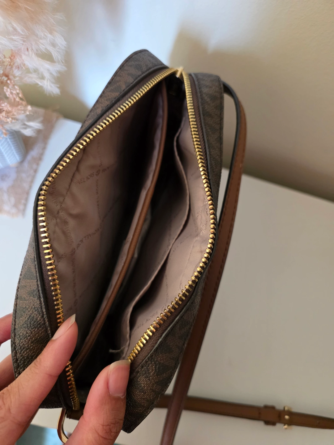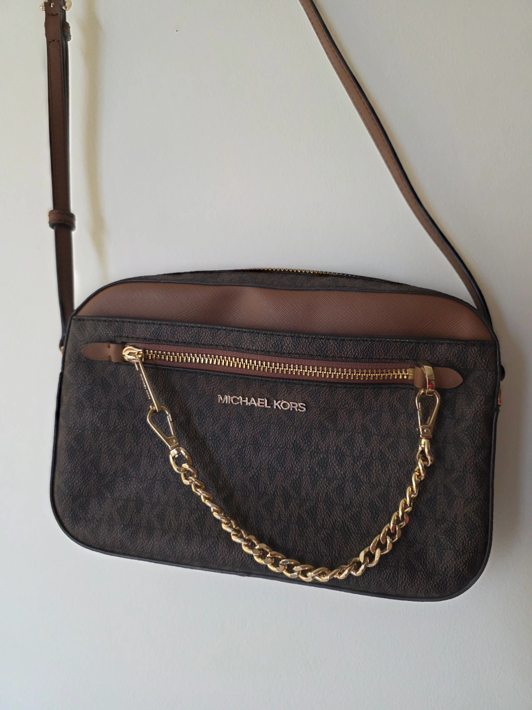 Brown Jet Set large logo crossbody bag from Michael Kors.