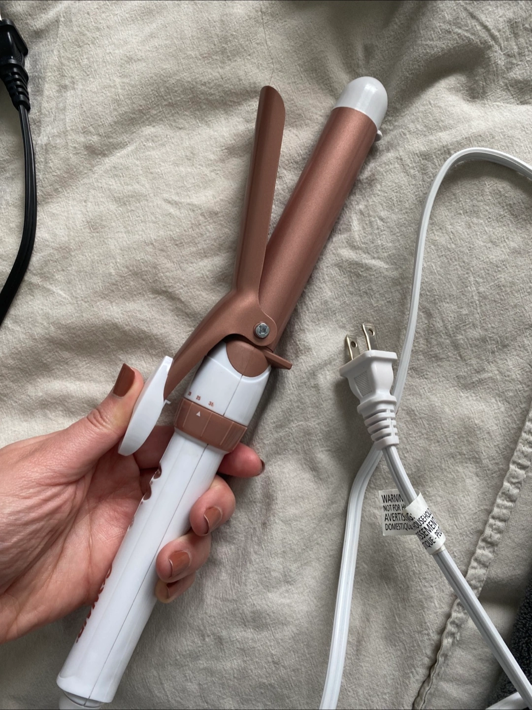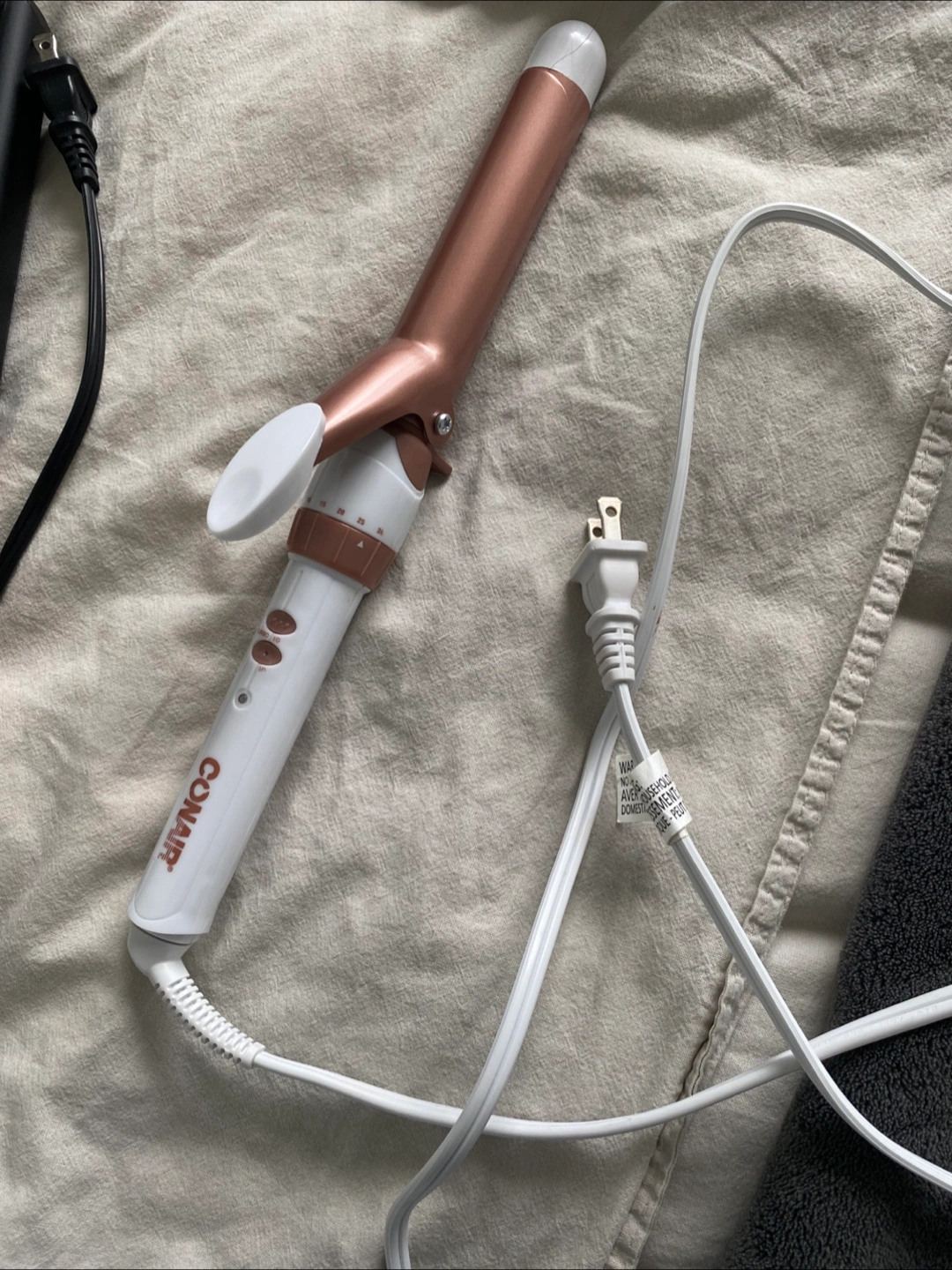 1.25 Inch Rose gold and white curling iron, great and easy to use. Used only one time, selling because I’m moving out. Check my listings for more items.