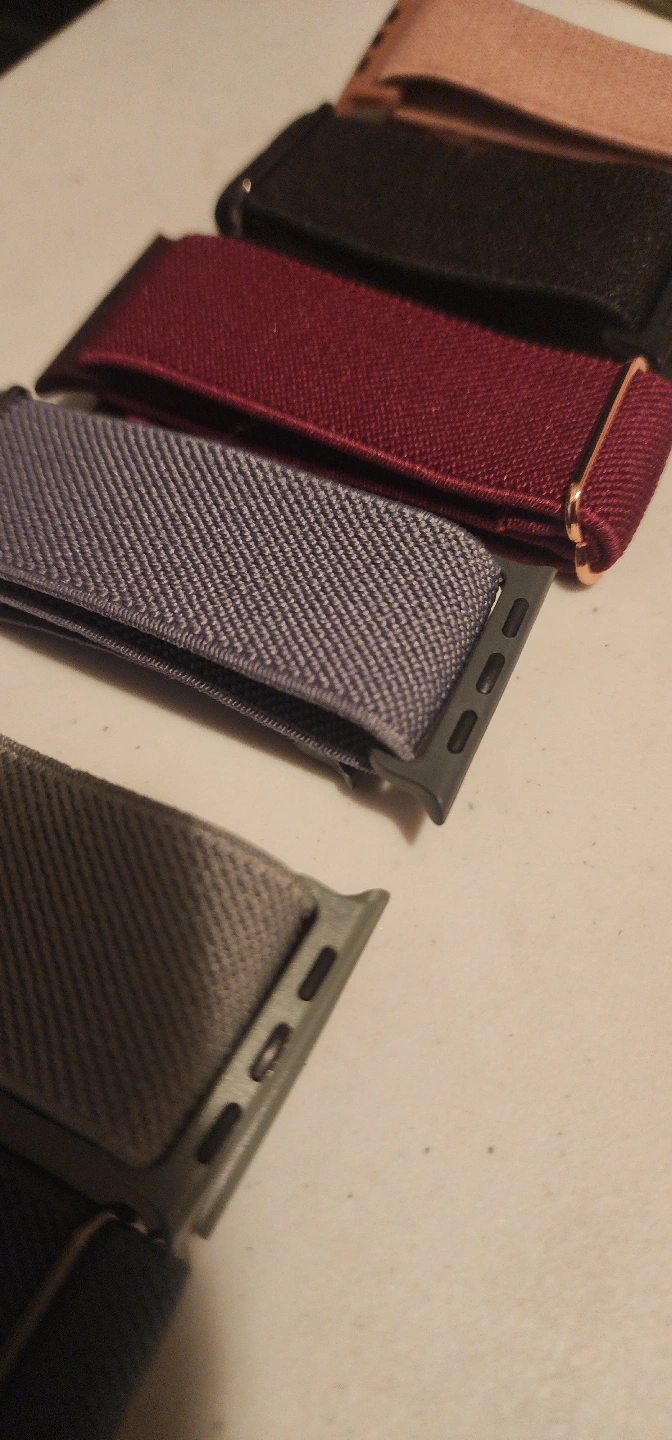 64Six Apple Watch bands. Various colours. Compatible with 38mm, 40mm, 41mm, 42mm, 44mm, 45mm Apple Watches. Stretchy solo loop design.