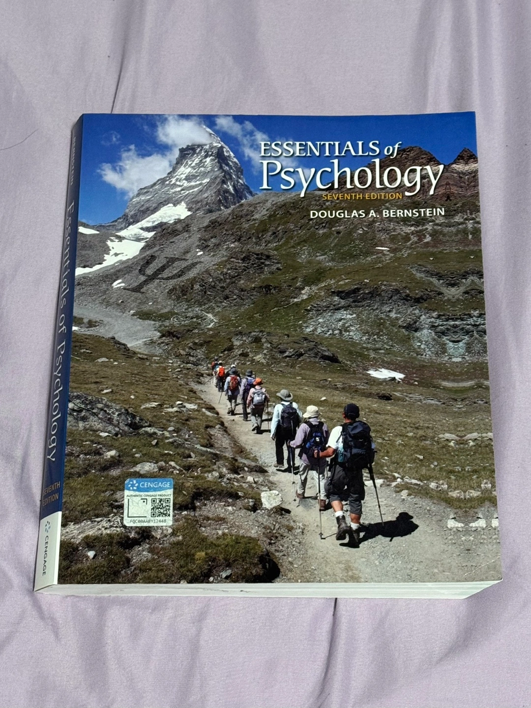 Used psychology textbook. Seventh edition. Author: Douglas A. Bernstein. Publisher: Cengage. Includes chapters on various psychology topics.