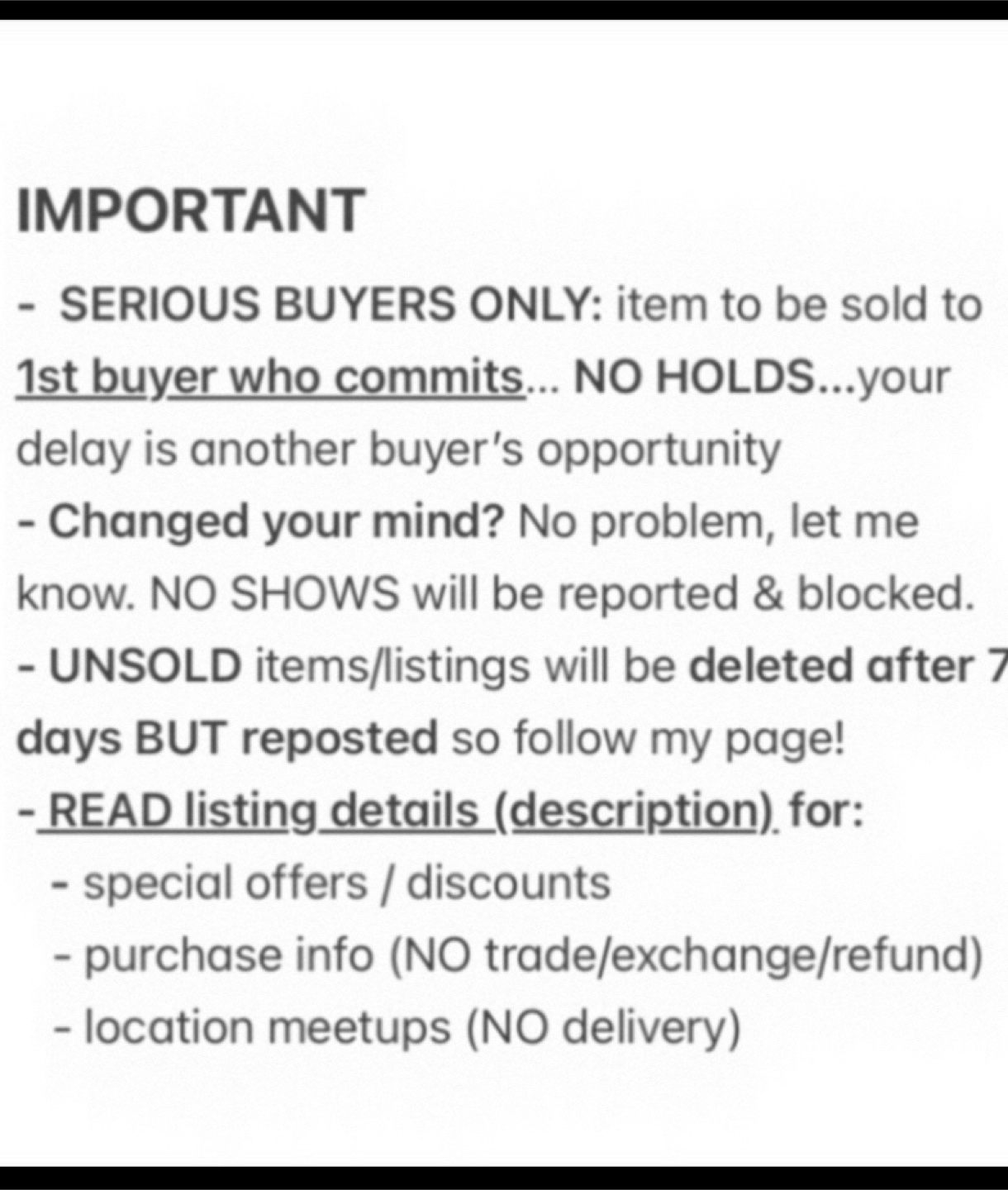 SERIOUS BUYERS ONLY / FINAL SALE / Cash Payment at pickup / NO HOLDS (Items will be sold on a FIRST-COME/PAYMENT-FIRST-SERVE basis!)