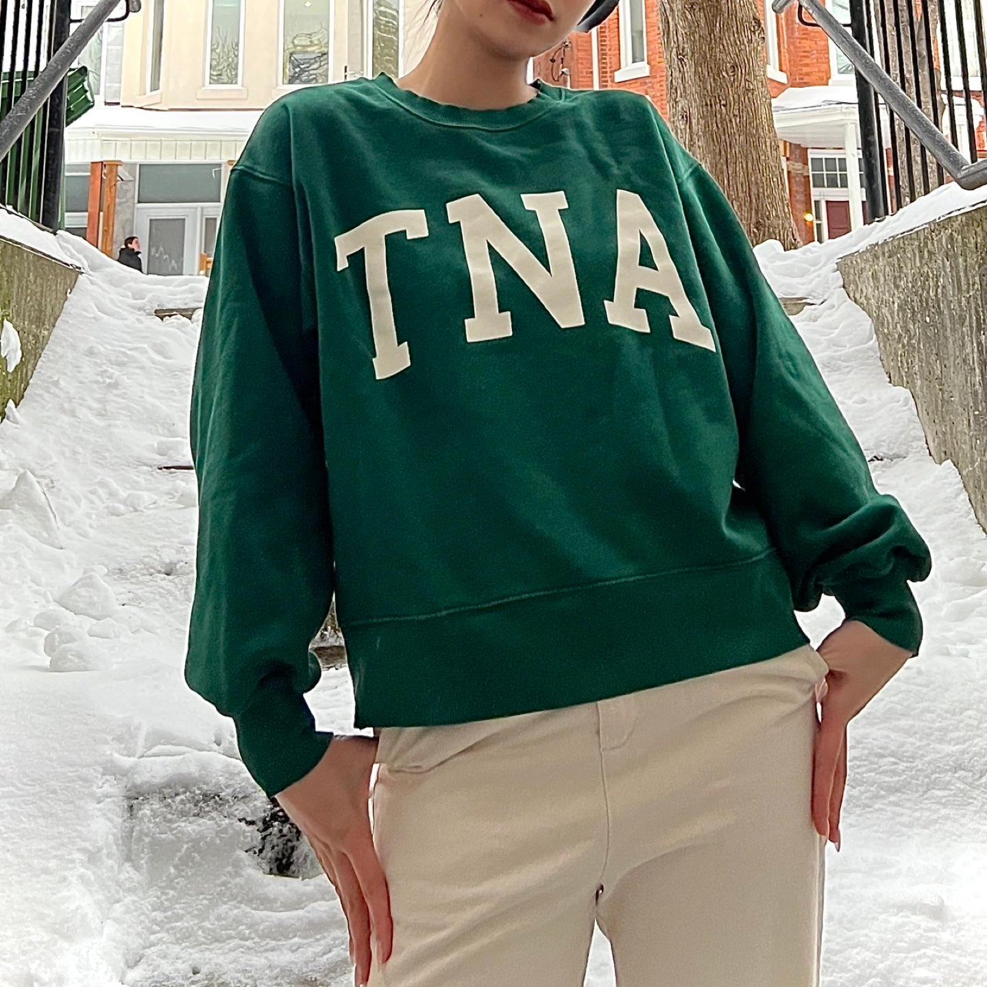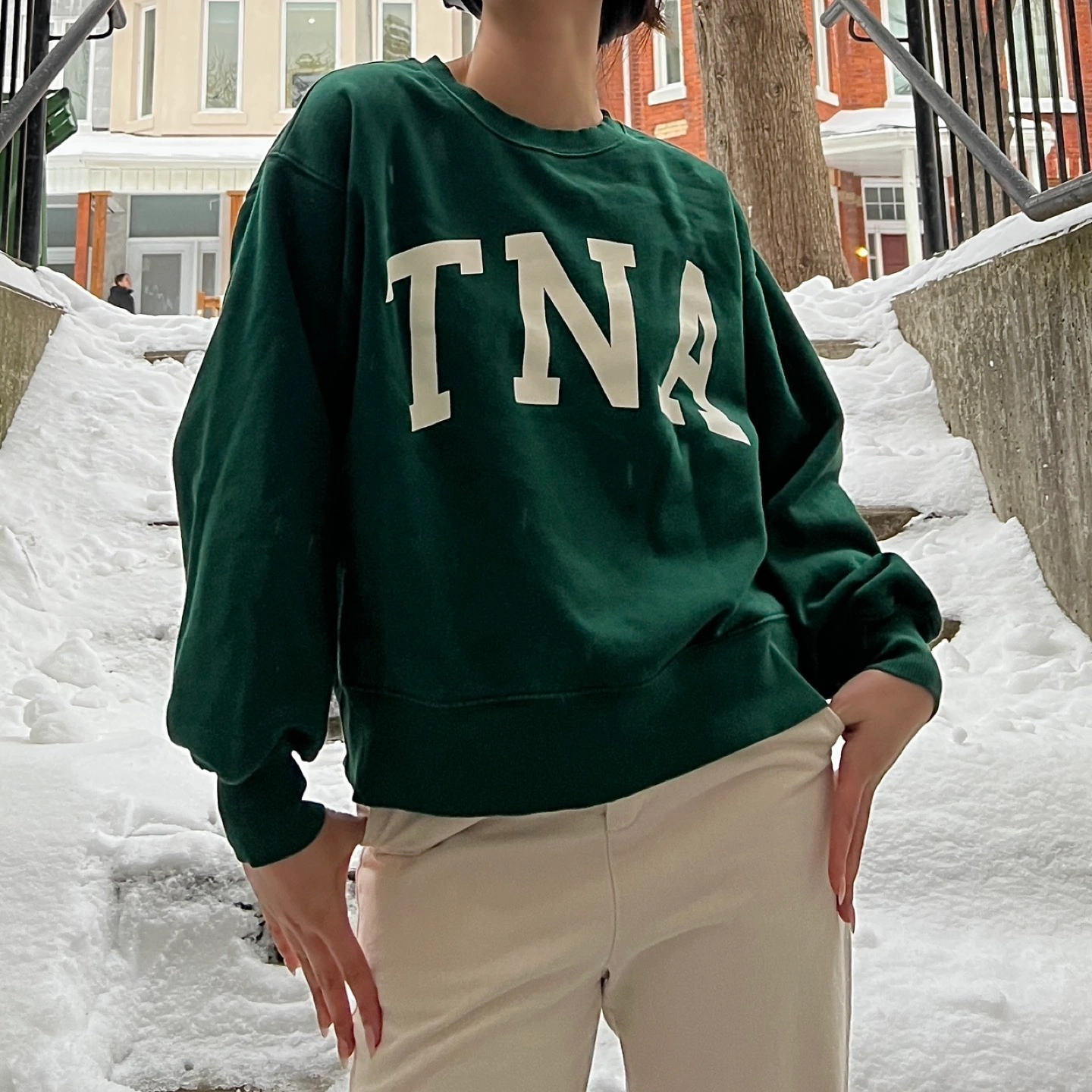 TNA green sweater