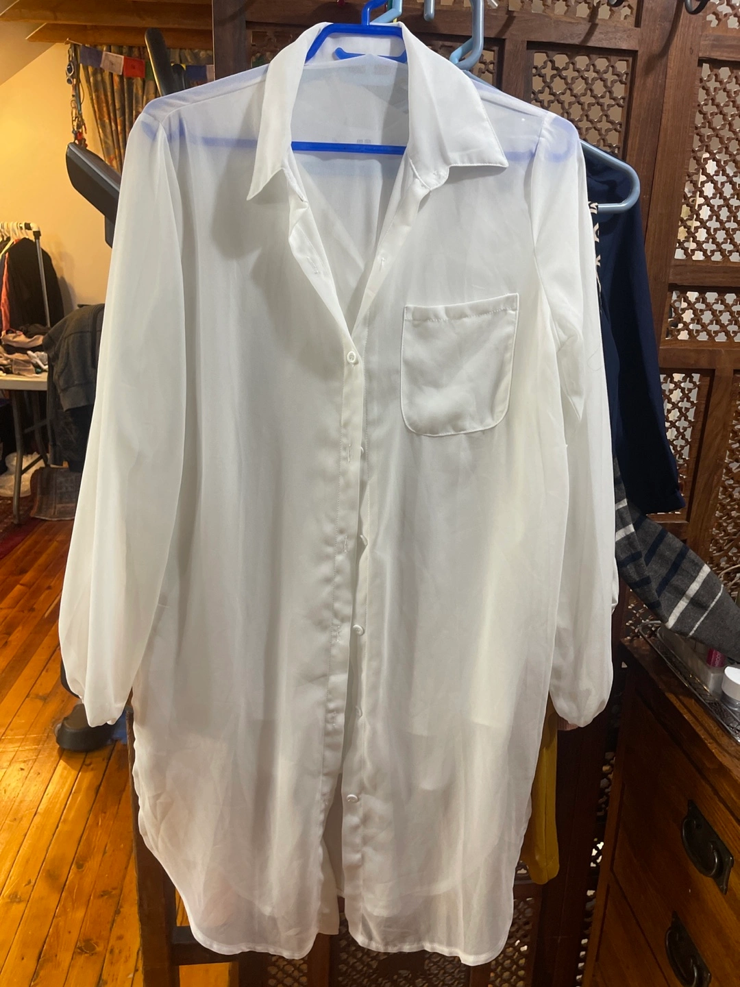 Women's White Sheer Button-Down Shirt