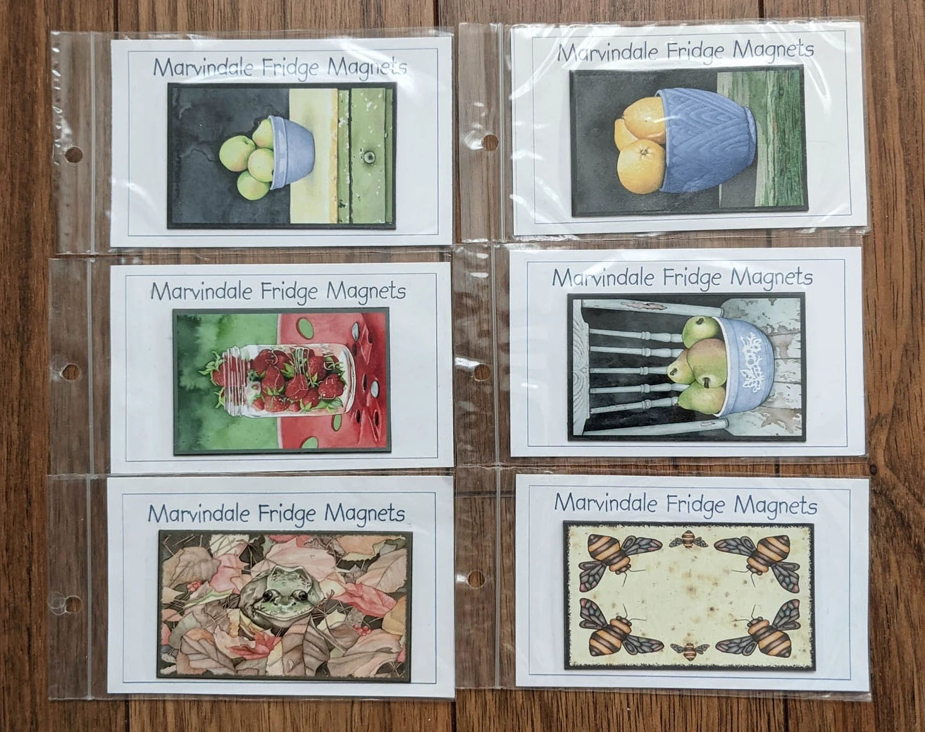 Six fridge magnets from Marvindale Fine Arts & Gifts, brand new.
