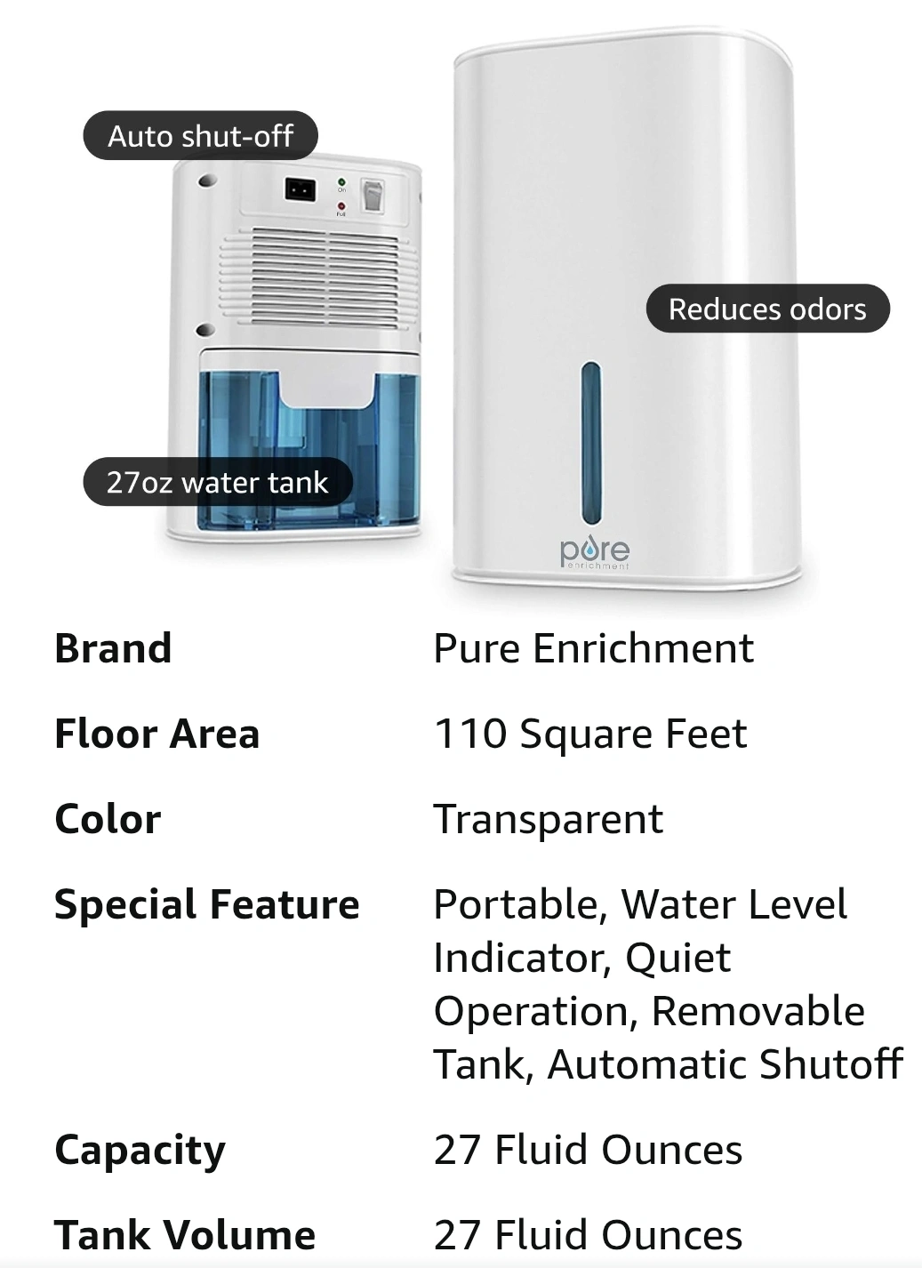 Pure Enrichment mini Dehumidifier