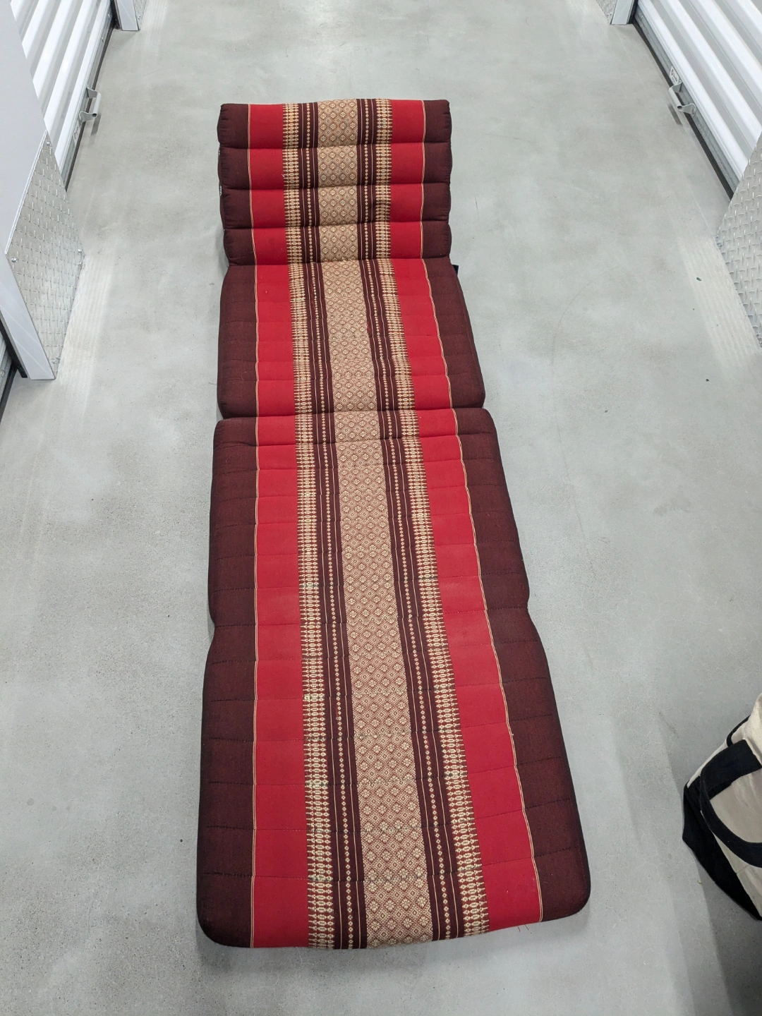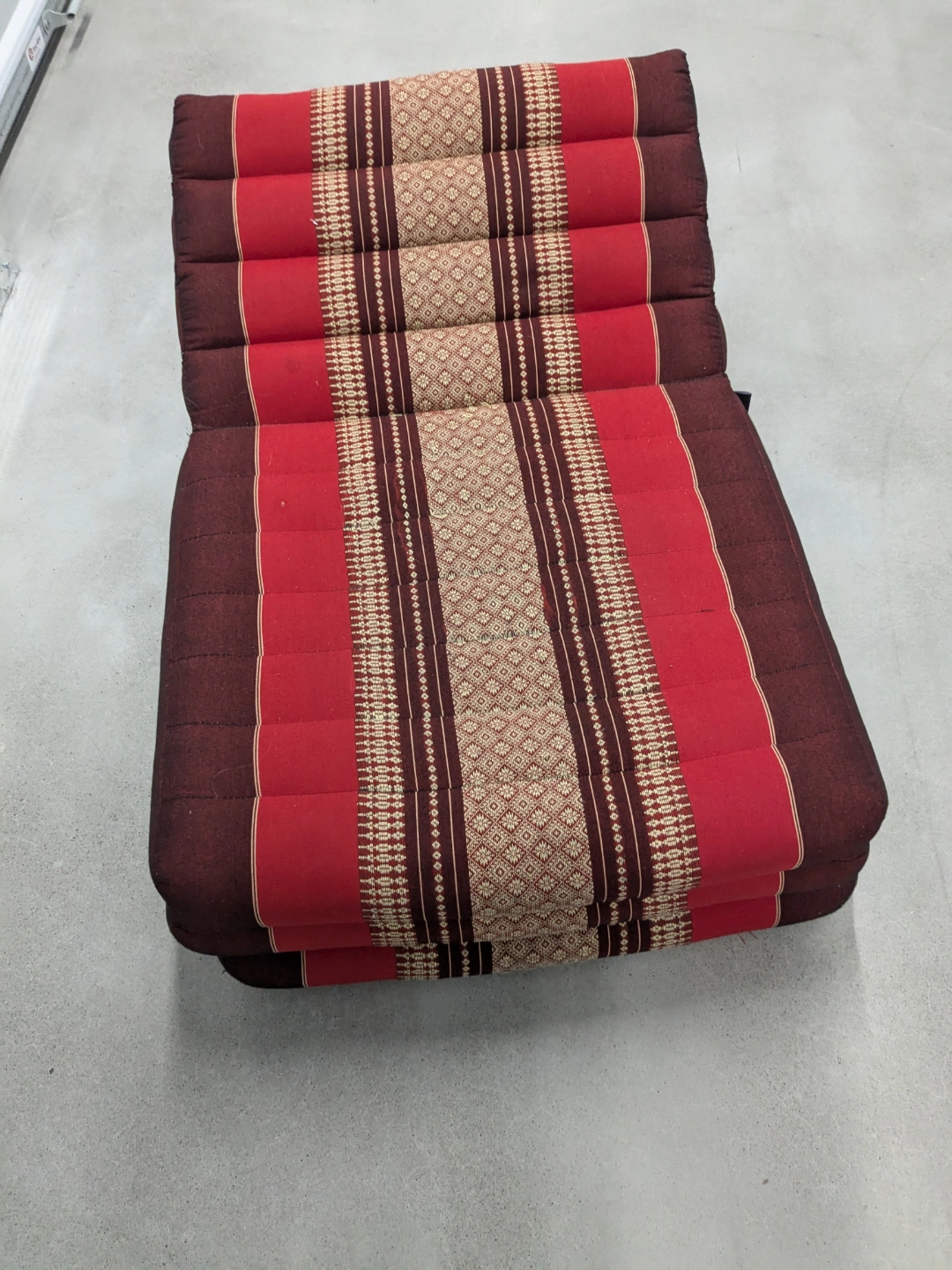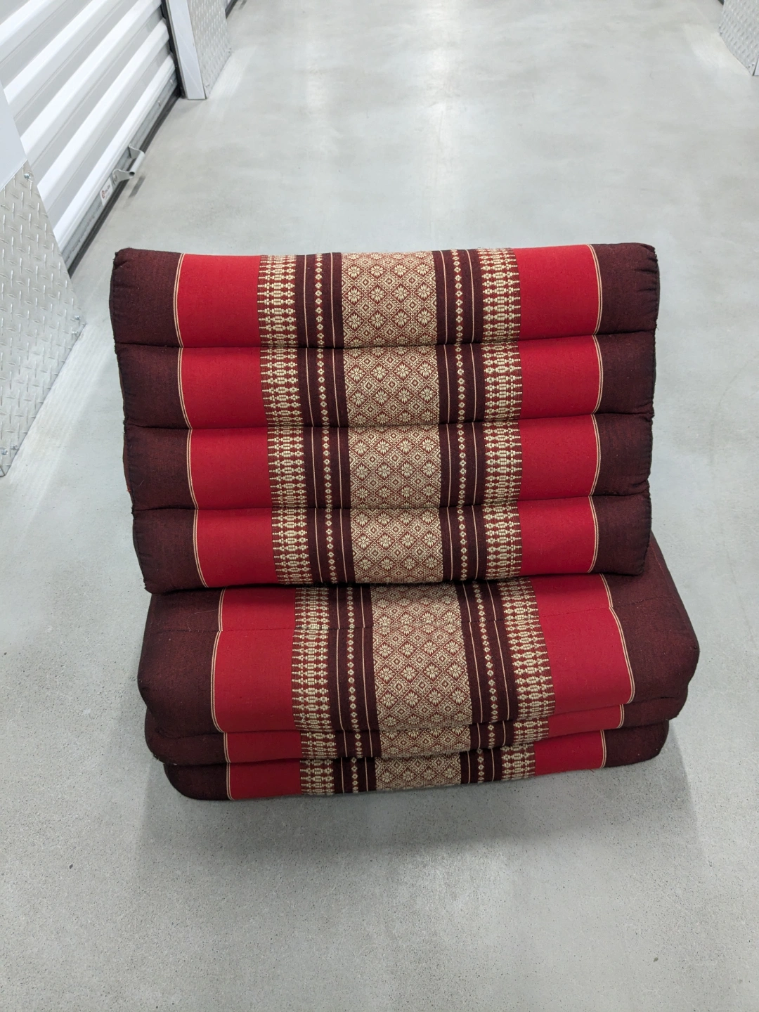 Multi-layered floor cushion. Red and brown patterned fabric. Perfect for meditation or relaxing. Good condition. Original Price $145