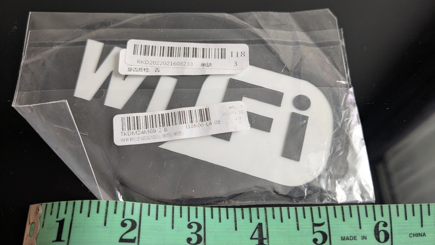 FREE Black and white adhesive WiFi symbol. New in packaging.