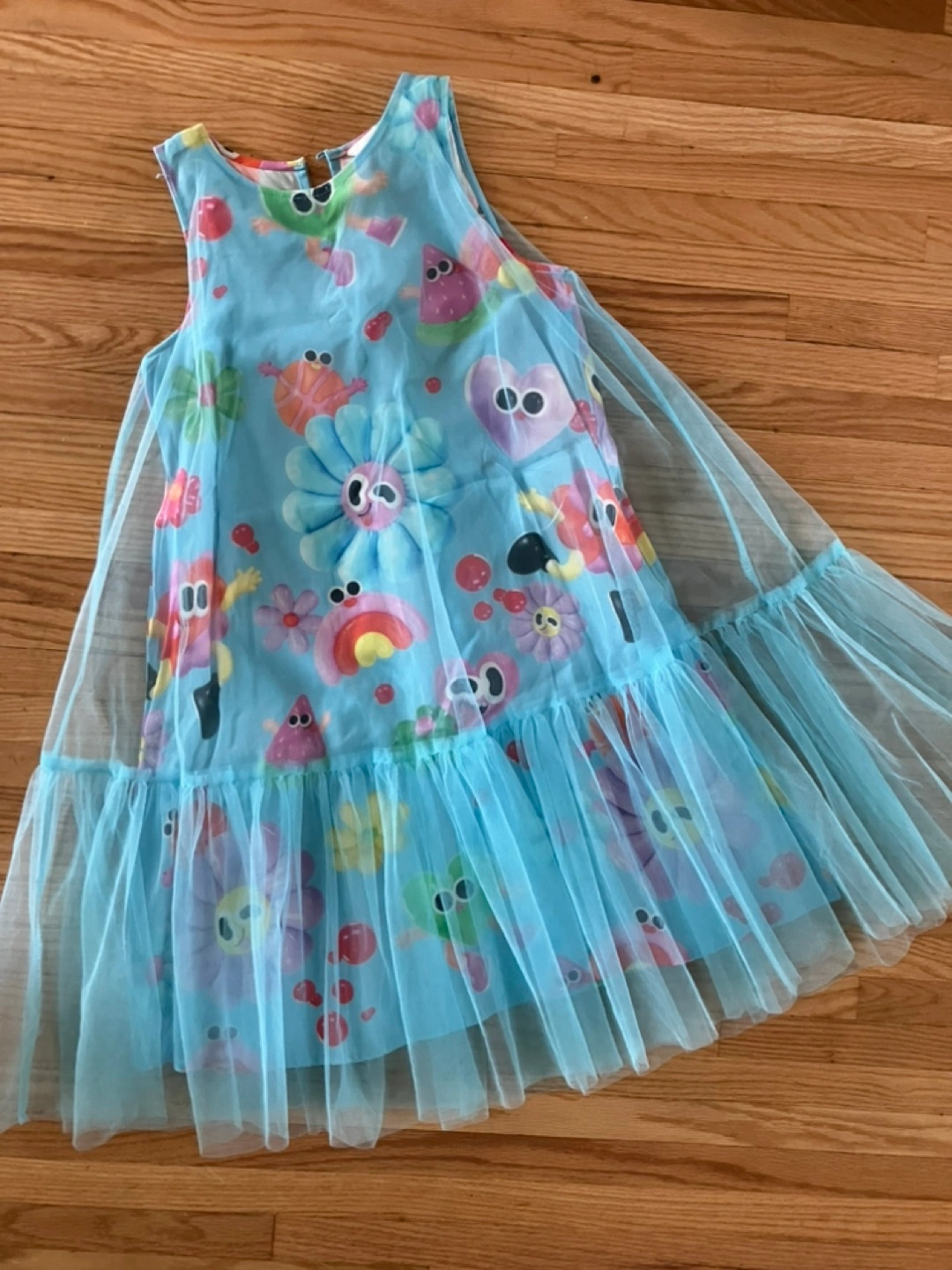 My daughter loved this dress because of all fun characters and colours. Looks cute on and kids love wearing it - win win!