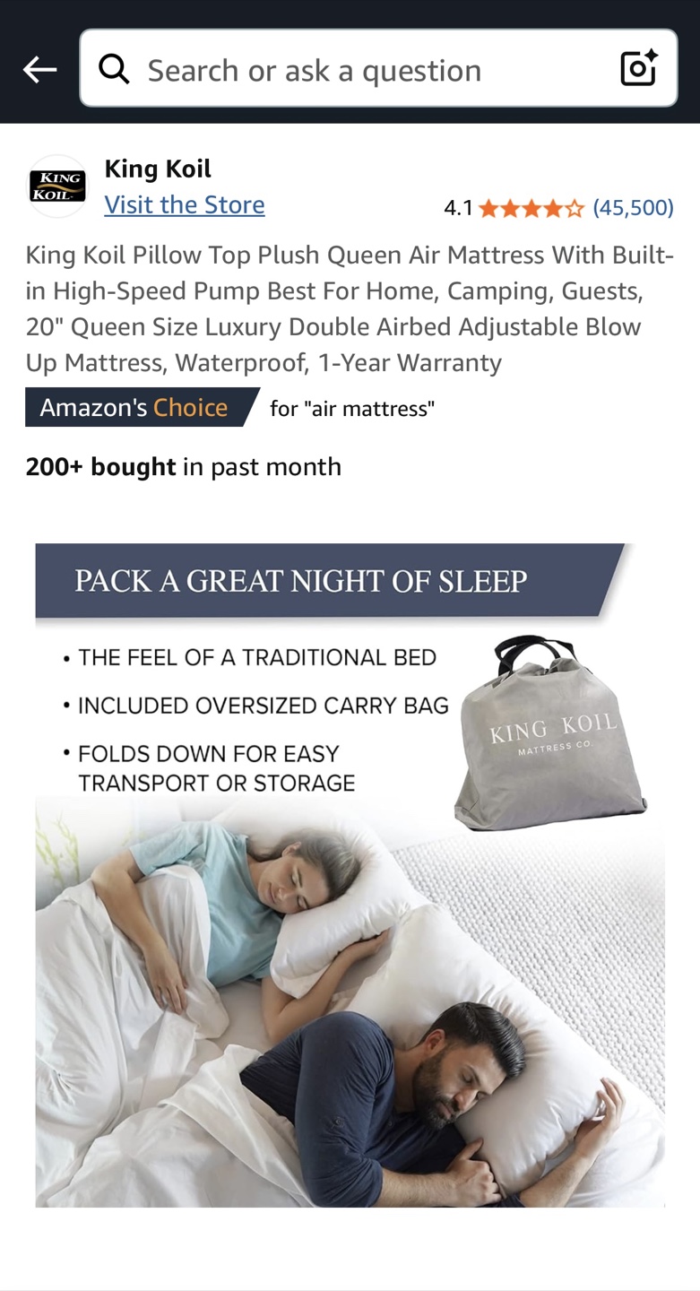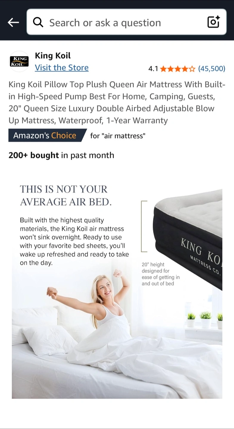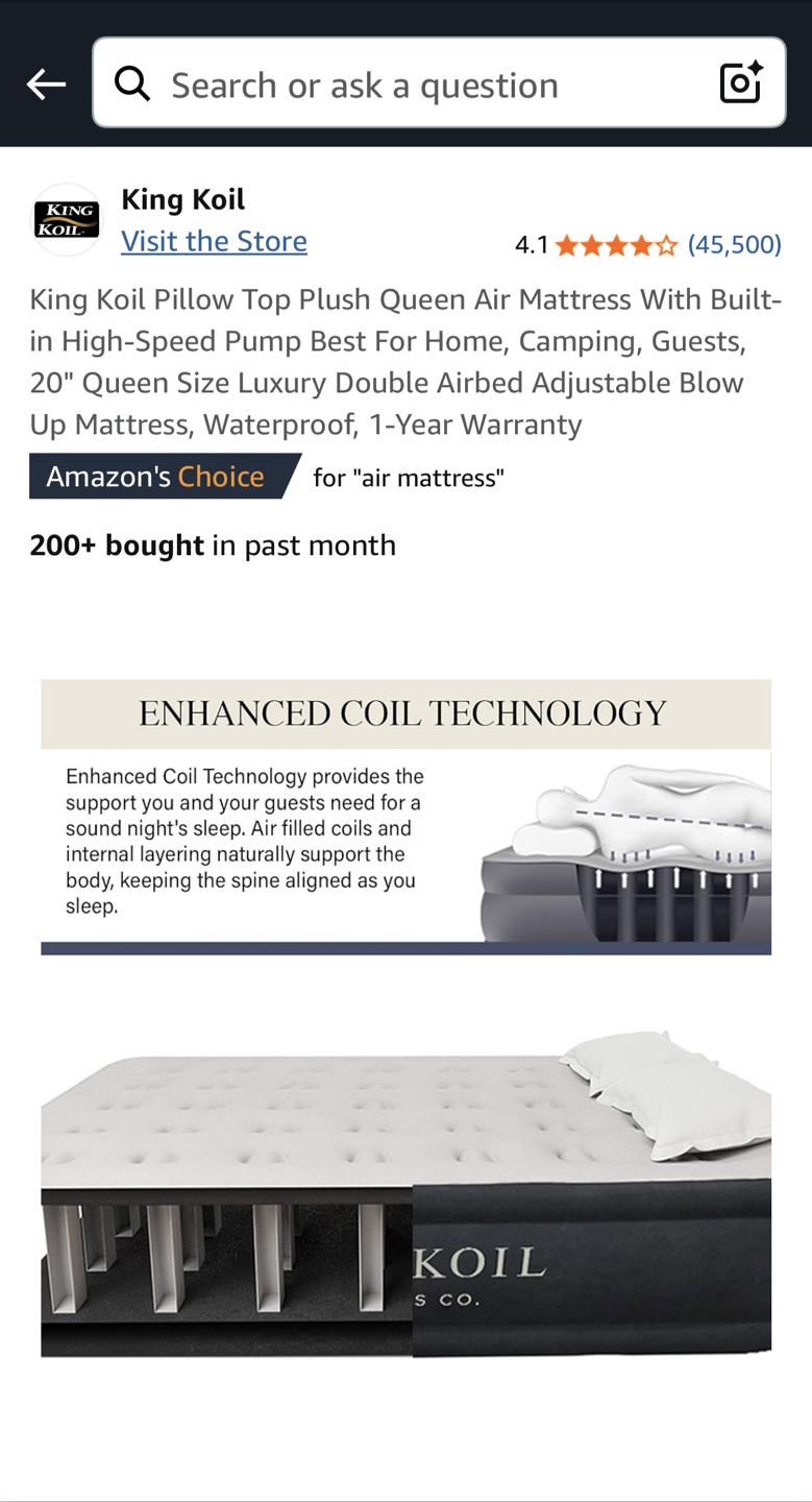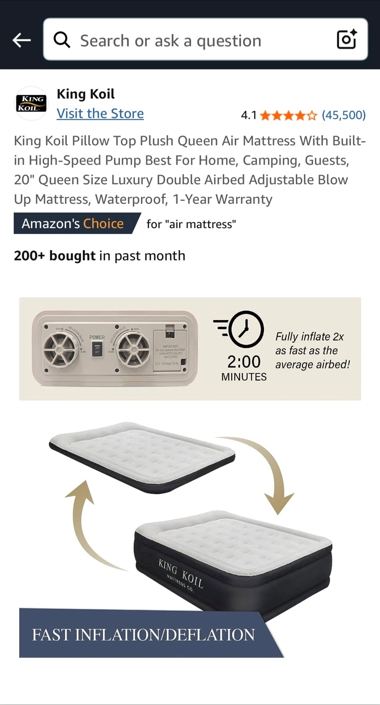 Queen size air mattress with built-in high speed pump and enhanced coil technology. Waterproof material.