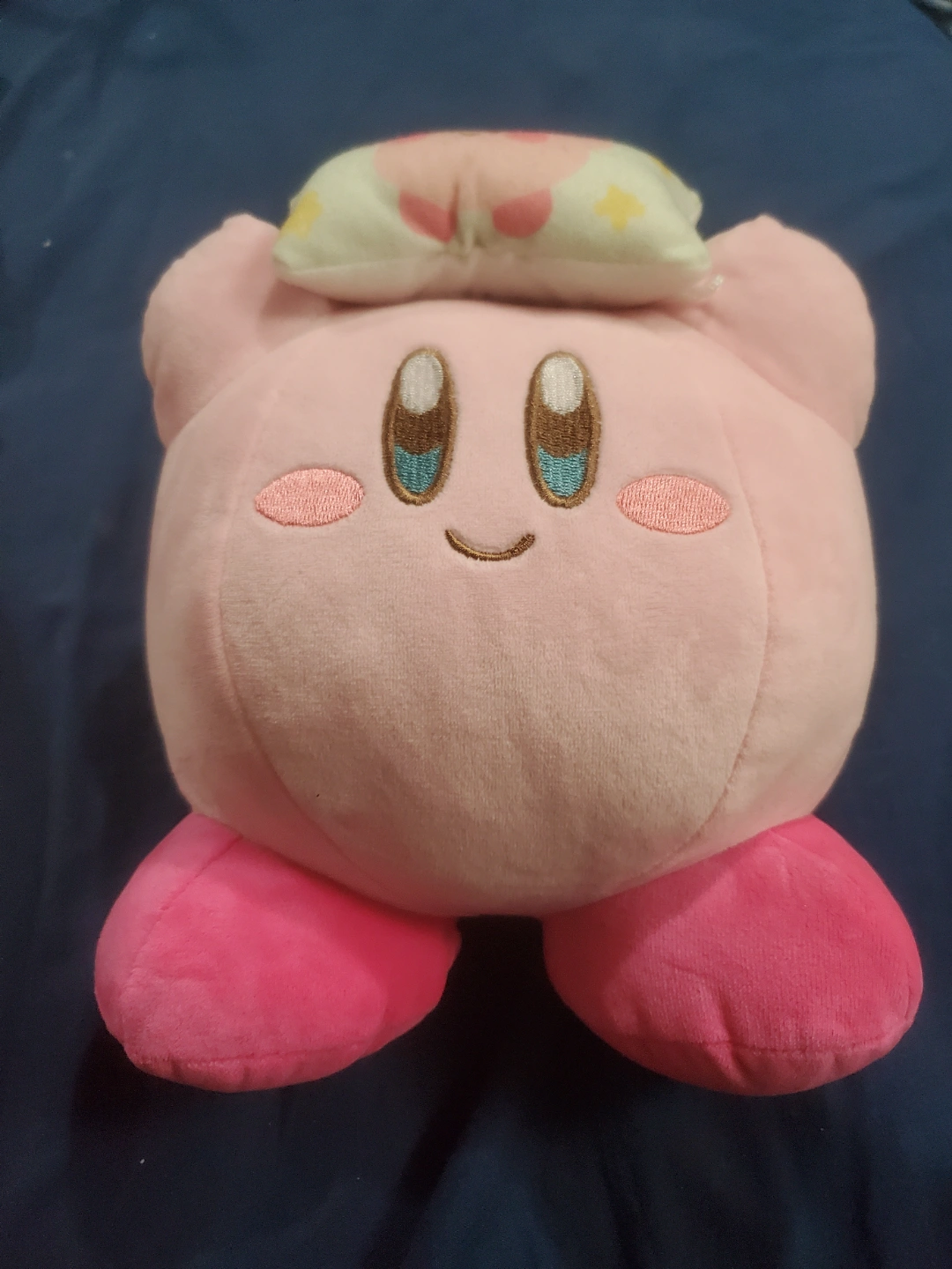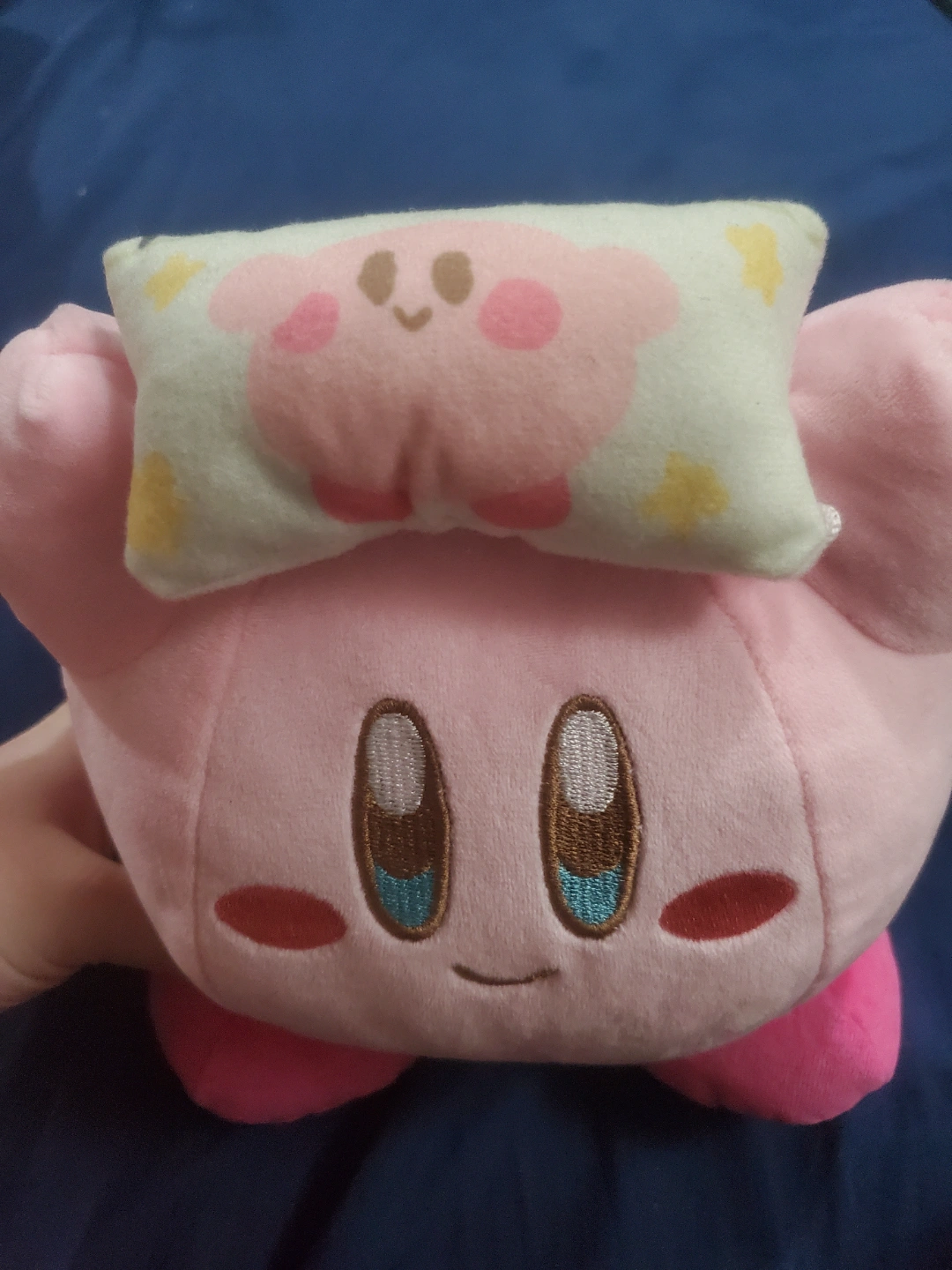 128cute Kirby holding a little drawing of itself :) 9-10inches tall new, only ever used as decor