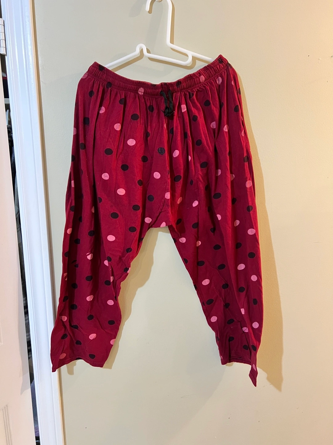 Bundle includes four pairs of women's pants and one long-sleeved shirt. Variety of colours and patterns. Sizes may vary. Please see photos for details.