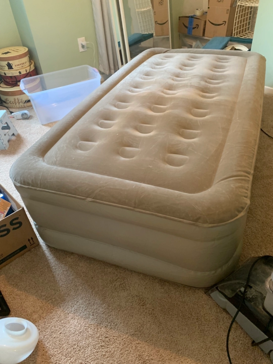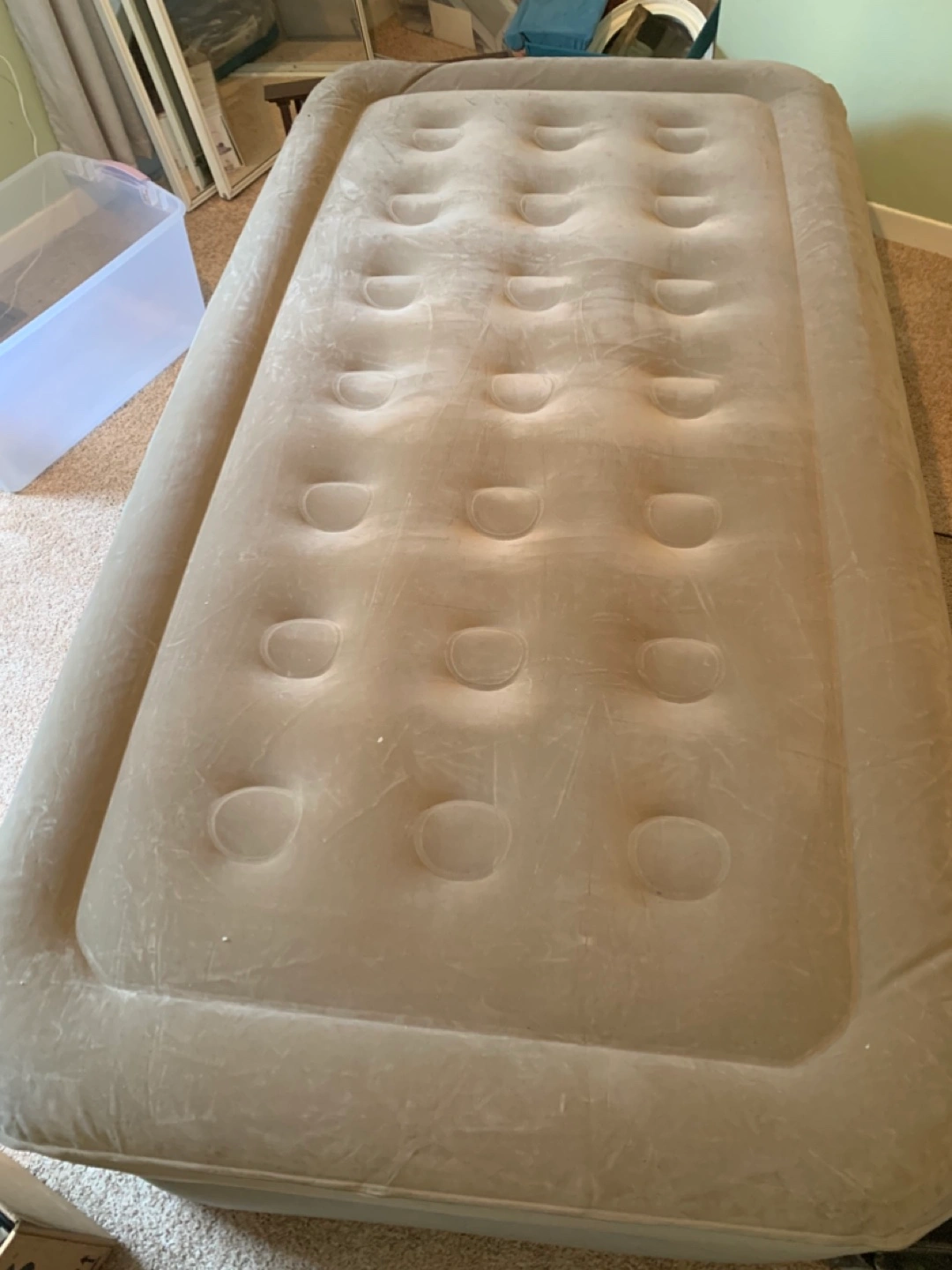 DUE TO 2 “no shows” I’m reducing to $30 firm . Only used for staging. Wider than most twin size inflation beds• Inflates very fast. ******* Roots Air Mattress with Built-in Pump features powerful integrated electric AC pump with reverse feature for quick and easy inflation/deflation • Pump cord storage compartment keeps cord contained • SureGrip bottom creates natural suction between Air Mattress and floor, which eliminates sliding on all surfaces • Three-chamber construction provides even-surface stability and minimizes low spots • Suede top creates a non-slip surface and helps bedding stay in place • Horizontal coil direction for more natural and comfortable sleeping position • Welded construction for enhanced durability **** Serious buyers only please. Porch pick up at McCowan and 16th in Markham. Paid $129