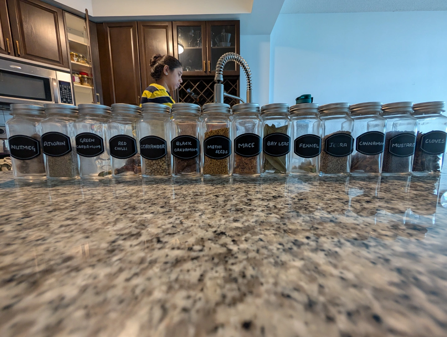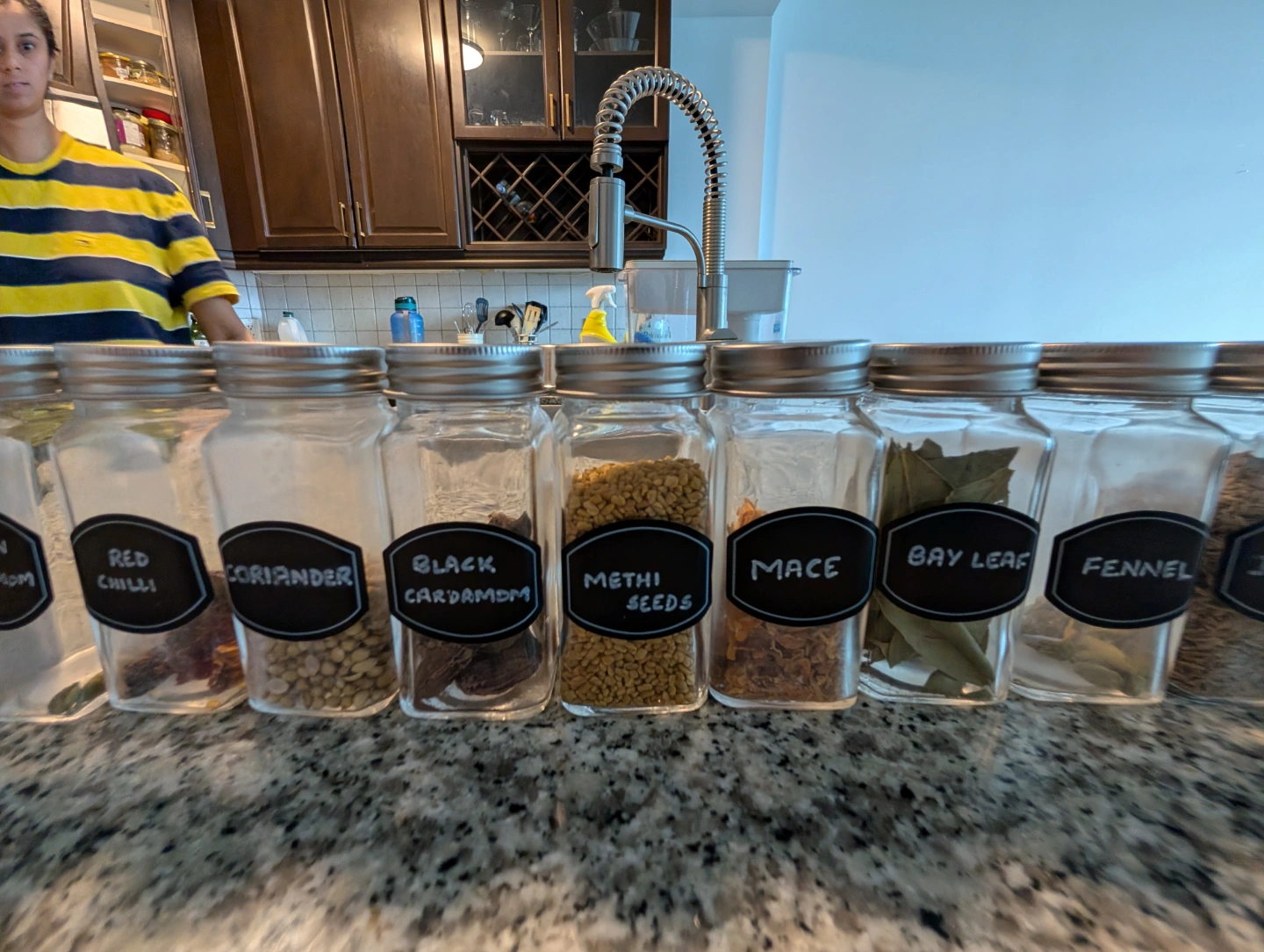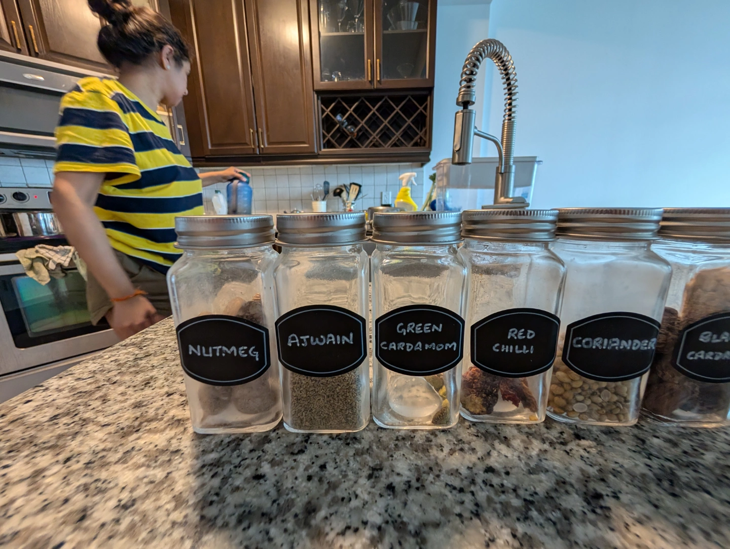 Set of empty spice jars with chalkboard labels. Great for organizing your spices. Includes extra labels and marker.