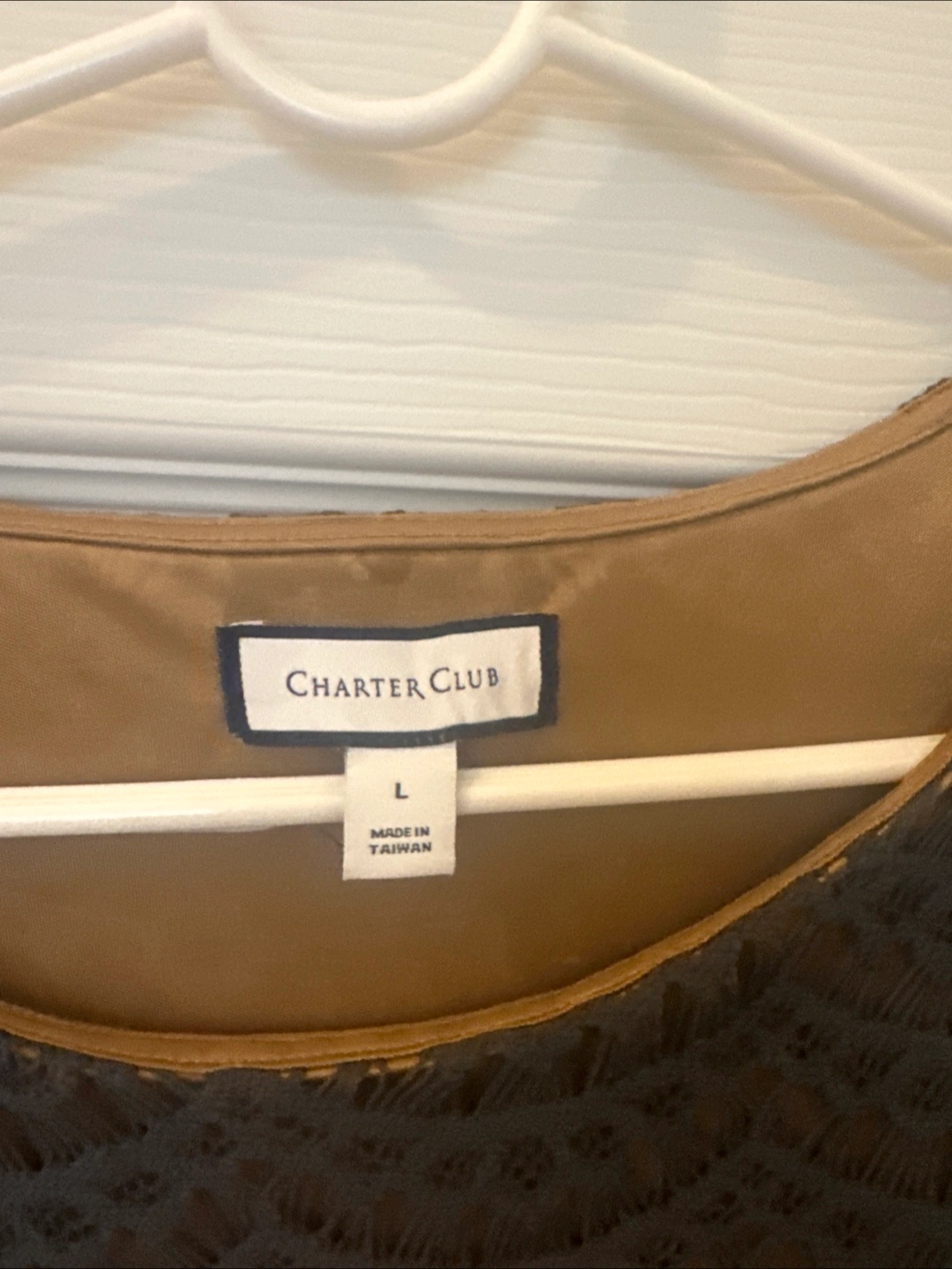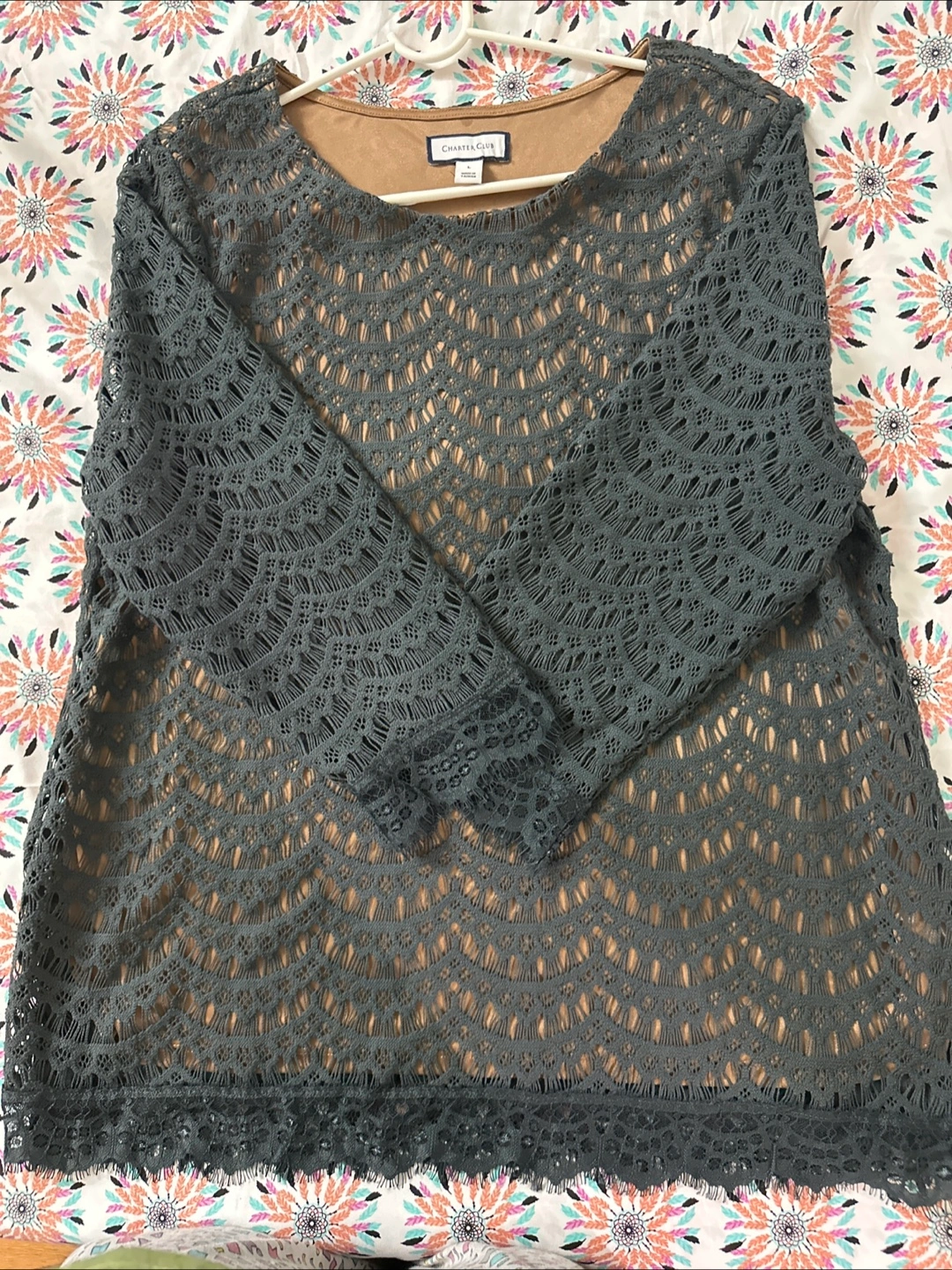Charter Club Women's Size L Gray Lace 3/4 Sleeve Blouse