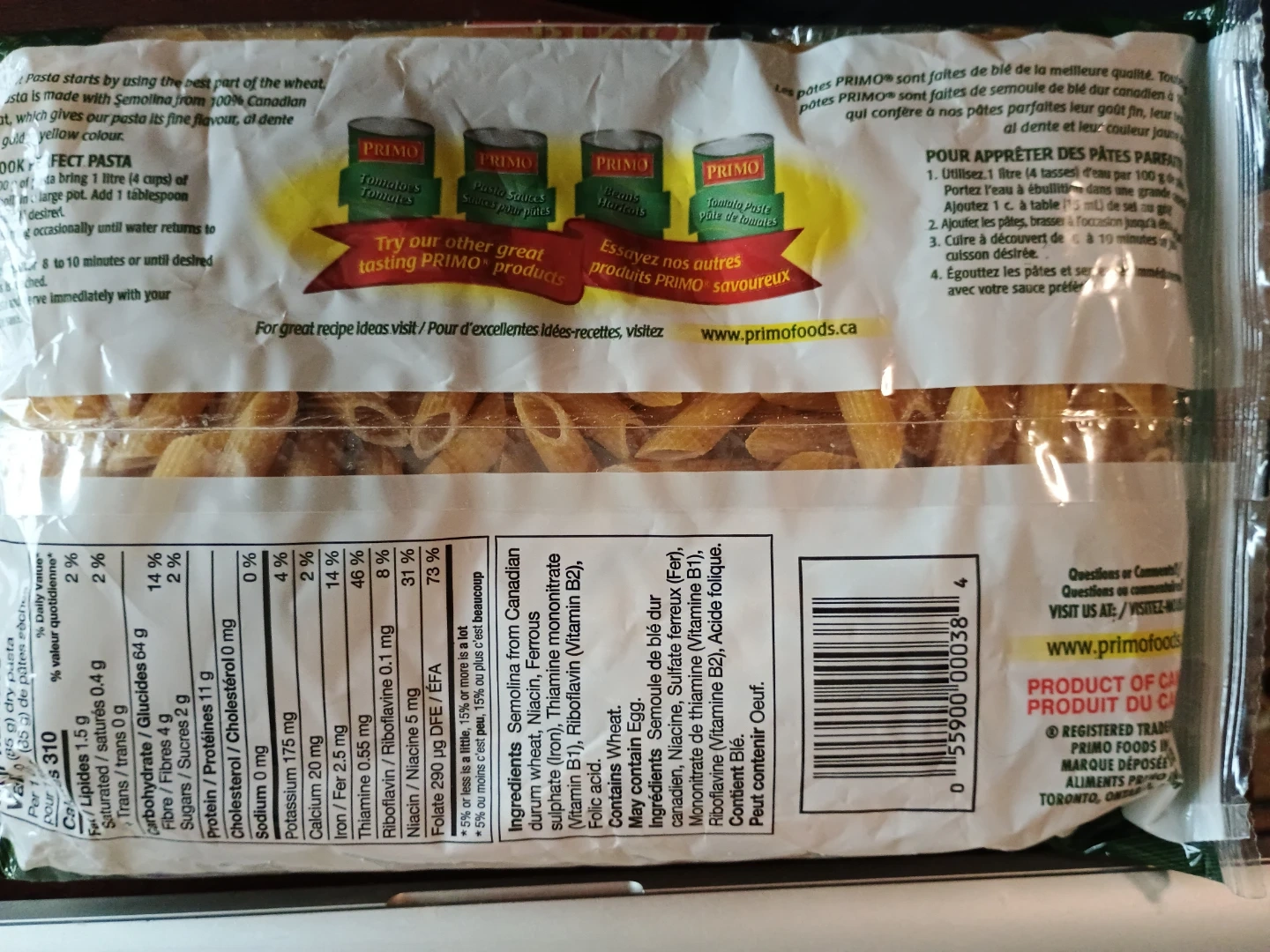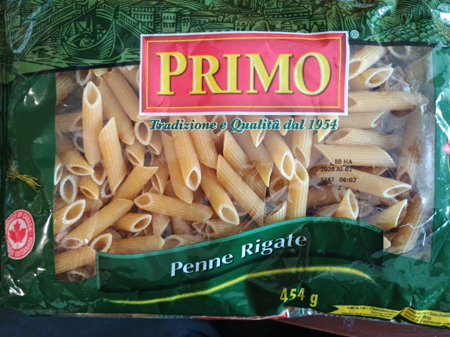 1 454g bag of Primo Penne Rigate pasta. Excellent source of folate and vitamin B1. Perfect for a quick and easy meal. 10-minute cooking time.