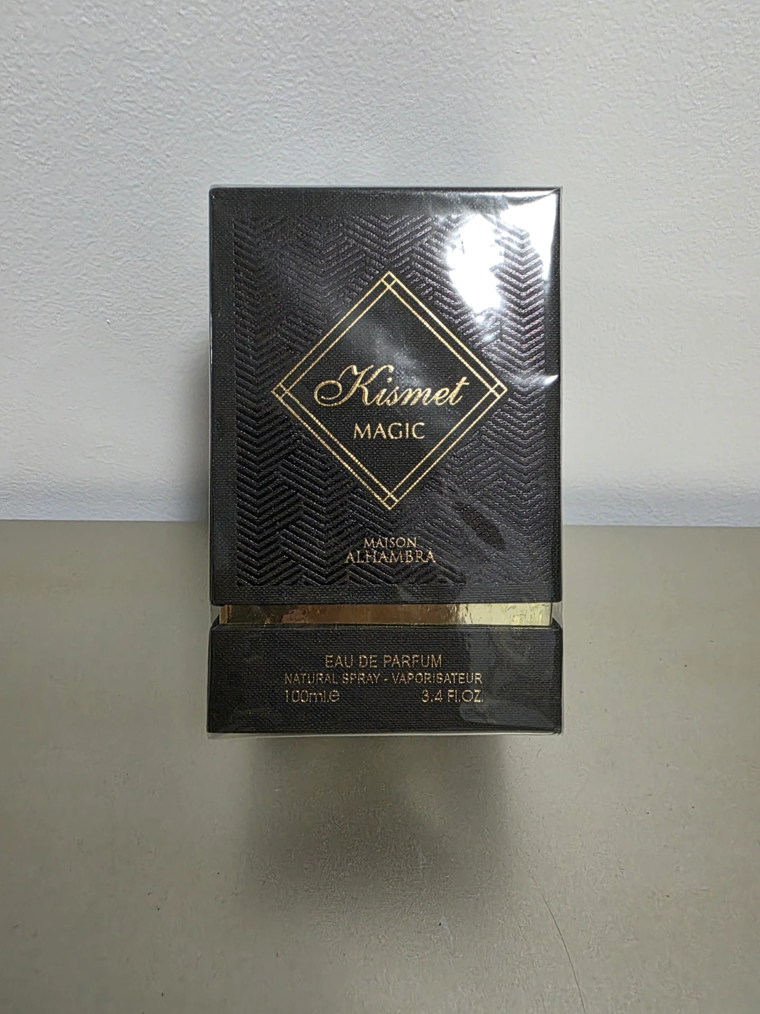 Kismet Magic New, unopened Eau de Parfum. 100ml/3.4 fl oz. Black box with gold accents. Winged logo.